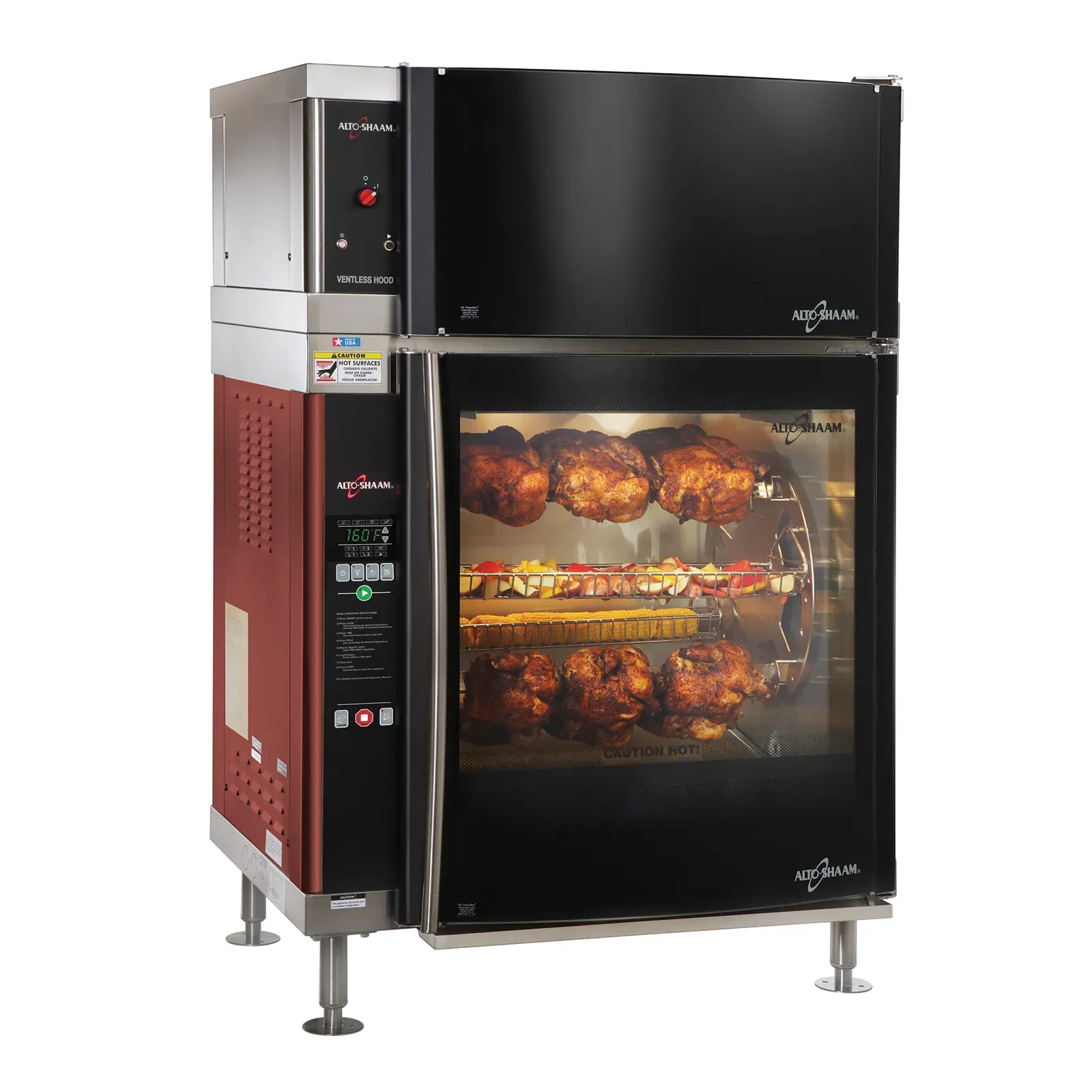 Introducing the Alto-Shaam AR-7EVH-DBLPANE Electric Rotisserie Oven, designed to dominate the culinary world in commercial restaurant settings. This powerful oven is equipped with a ventless hood, making it a versatile and convenient choice for any kitchen. With its seven removable stainless steel angled spits, it can accommodate a capacity of 21-28 chickens, ensuring efficient cooking for high-demand environments. The cook-n-hold feature allows for precise temperature control, ensuring perfectly cooked and flavorful results every time. The electronic LED controller with display makes it easy to monitor and adjust settings, while the double pane curved glass door provides excellent visibility and insulation. Made with durable stainless steel construction and equipped with a drip pan with drain, this oven is built to withstand the demands of a busy restaurant kitchen. With its EcoSmart technology and certifications including cULus UL EPH ANSI/NSF 4, CE, IPX3, TUV NORD, and PCT, the Alto-Shaam AR-7EVH-DBLPANE Electric Rotisserie Oven is a reliable and efficient choice for commercial restaurant use.