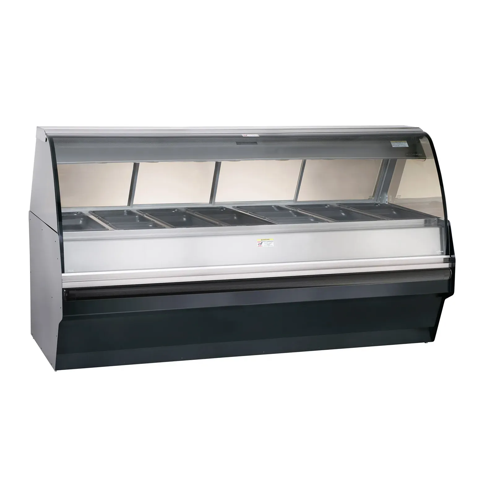 Create culinary magic with the Alto-Shaam TY2SYS-96-BLK Display Case, Heated Deli, Floor Model. This full-service hot deli display system is designed to elevate your restaurant's food presentation and keep it at the perfect temperature. The system includes seven full-size 2-1/2" deep pans and seven 1/3 size x 2-1/2" deep pans, providing ample space for showcasing a variety of delicious dishes. The TY2-96 display case is mounted on a low-profile 96" decorator base, featuring a galvanized steel front panel and black painted end panels for a sleek and professional look. With Halo Heat technology, this display case ensures even heat distribution, keeping your food hot and fresh without drying it out. The EcoSmart design makes it energy-efficient, while the cULus, UL EPH ANSI/NSF 4, CE, IPX3, TUV NORD, and EAC certifications guarantee its safety and quality. Elevate your restaurant's food presentation with the Alto-Shaam TY2SYS-96-BLK Display Case, Heated Deli, Floor Model.