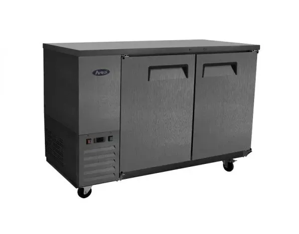 Unleash gastronomic brilliance with the Atosa USA, SBB48GRAUS2 Shallow Depth Back Bar Cooler. Designed for commercial restaurant use, this two-section cooler is perfect for keeping your beverages chilled and easily accessible. With a shallow depth of 24-1/2", it maximizes space efficiency without compromising on storage capacity, offering 11.5 cu. ft. of space. The self-contained side mount refrigeration ensures optimal cooling performance, while the digital temperature control allows for precise adjustments. The two locking solid doors provide security and convenience, while the stainless steel top adds durability and a sleek look. Inside, you'll find four epoxy coated shelves that can accommodate a variety of bottles and cans. The stainless steel interior is easy to clean and maintain, while the black exterior adds a touch of sophistication. With 2" casters for easy mobility and a cord with NEMA 5-15P for simple plug-and-play installation, this back bar cooler is a must-have for any commercial restaurant.
