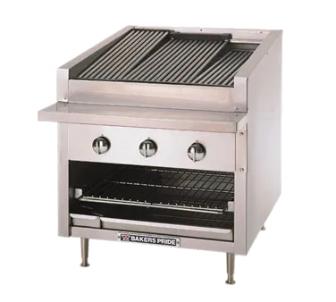 Cook with precision using the Bakers Pride C-24RS Charbroiler. This gas countertop charbroiler is part of the Dante Series, designed to meet the high demands of commercial restaurant kitchens. With a 24"W standard profile and a 21"W x 24"D broiler area, this charbroiler provides ample space for grilling a variety of meats and vegetables. The 2.5 burners and stainless steel radiants ensure even heat distribution, resulting in perfectly cooked dishes every time. The adjustable top grate assembly with floating 1/2" dia. steel rods allows for versatile cooking options, accommodating different thicknesses of food. The 6" stainless steel work deck provides a convenient space for food preparation. Made with stainless steel construction, this charbroiler is durable and easy to clean. With a powerful 90000 BTU output, this charbroiler is capable of handling high-volume cooking. It is CSA Star, NSF, and CSA Flame certified, ensuring its safety and reliability. Upgrade your restaurant kitchen with the Bakers Pride C-24RS Charbroiler and elevate your grilling game.