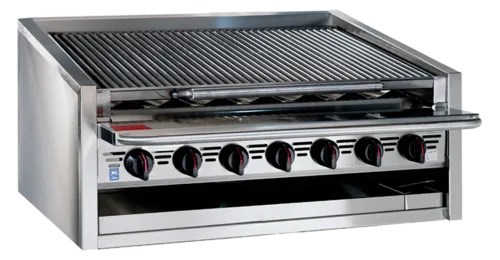 Bakers Pride L-RS series charbroilers feature a low-profile design and 15,000 BTU burners for energy efficiency and broiling performance. Models come in a range of sizes from 24” to 72” wide. A continuously lit, cross-over pilot tube system makes lighting burners a breeze. Stainless steel radiants come standard, as do steel floating rod grates, which may be adjusted in two separate tilting positions for increased flexibility and temperature control. Fully insulated, double walls help with heat retention, while stainless steel interiors and exteriors make these charbroilers both durable and easy to clean. This series also offers many options to suit your needs, such as Glo-Stones for enhanced flavor and work decks for added convenience.