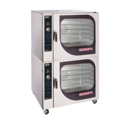 Achieve kitchen supremacy with the Blodgett BX-14E Double Combi Oven. This electric, boilerless oven is designed to meet the demands of a busy commercial restaurant. With a stacked configuration, it offers a generous capacity of (14) 12" x 20" full-size hotel pans or (7) 18" x 26" full-size sheet pans per compartment. The Steam-on-Demand and Vario Steam features ensure precise control over the cooking process, while the 4-speed fan ensures even heat distribution. The core temperature probe allows for accurate monitoring of food doneness. The glass door provides visibility into the cooking chamber, and the 13-position rack glides make it easy to adjust the shelves. With (5) wire shelves, a retractable hose reel, and 4" low profile casters, this oven offers convenience and mobility. With a total power of 38.0 kW and NSF and cETLus certifications, the Blodgett BX-14E Double Combi Oven is a reliable and efficient choice for any commercial kitchen.