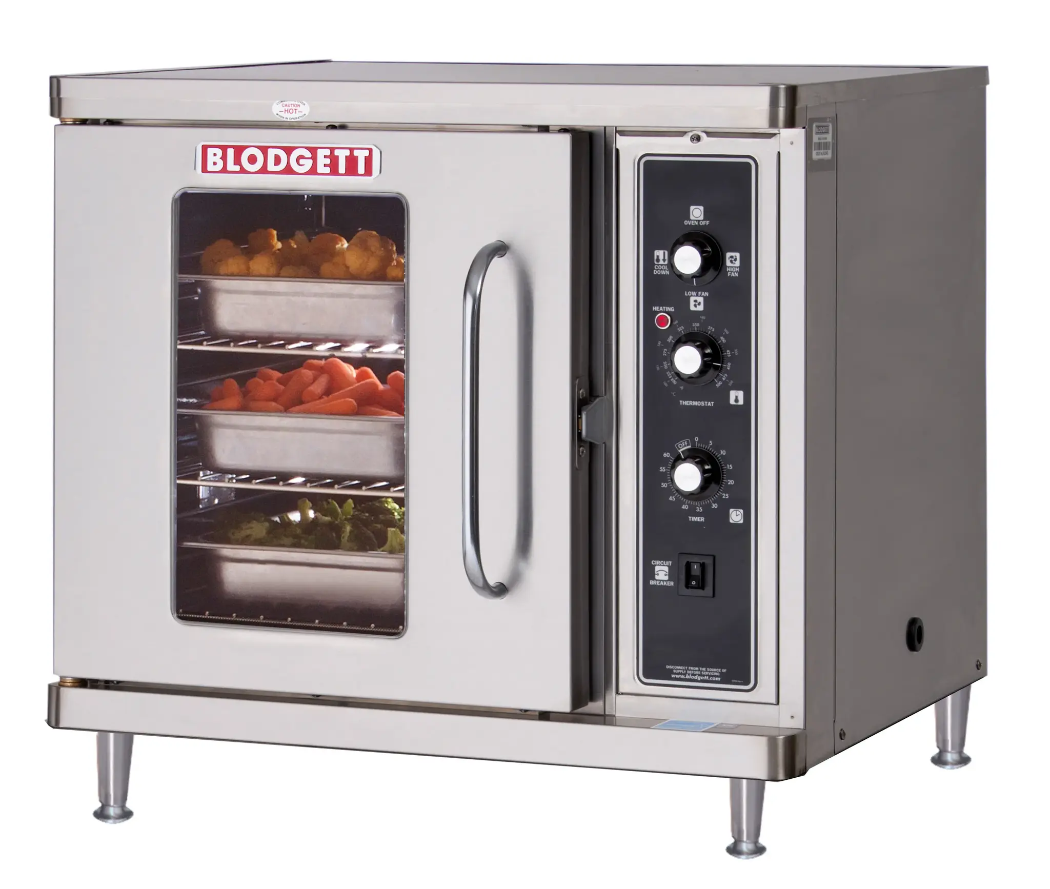 The gold standard of convection ovens! Blodgett Premium series convection ovens have the lowest cost of ownership of ANY commercial convection oven. Blodgett ovens are built with exceptional materials and craftsmanship, high energy efficiency and offer stellar service/repair records. That’s why Blodgett ovens are the industry benchmark for quality and reliability, providing decades of rigorous use in any commercial kitchen. Don’t be surprised if your Blodgett convection oven lasts more than thirty years! CTB-SGL is a single oven and includes 4” stainless steel legs