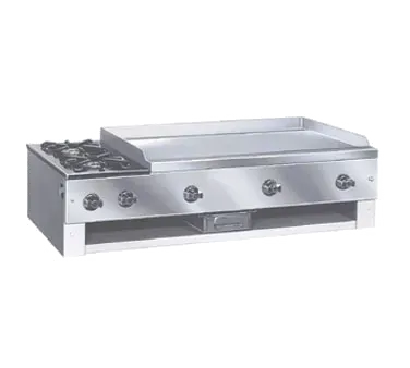 Introducing the Comstock-Castle 10T201 Griddle/Hotplate, a game-changer for commercial restaurant kitchens. With its innovative design and exceptional performance, this gas countertop unit is a must-have for mastering the art of cuisine. Boasting two powerful 12,000 BTU open burners and a 20" wide x 16" deep x 1/2" thick griddle plate, this versatile appliance offers precise temperature control and even heat distribution. The removable grease drawer ensures easy cleaning, while the stainless steel front and sides guarantee durability and a sleek appearance. With a total output of 48,000 BTU, this NSF-certified griddle/hotplate is perfect for cooking a variety of dishes simultaneously, making it ideal for busy commercial kitchens. Whether you're searing steaks, saut ing vegetables, or grilling sandwiches, the Comstock-Castle 10T201 is the ultimate tool for culinary success. Upgrade your restaurant's cooking capabilities with this top-of-the-line countertop unit.