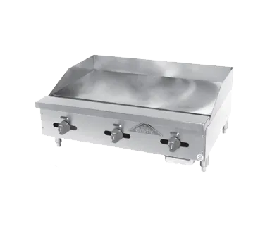 Invest in quality for an unmatched cooking journey with the Comstock-Castle 3824MG Gas Countertop Griddle. Designed for commercial restaurant use, this griddle is a game-changer in the kitchen. With a 24" wide x 30" deep x 3/4" thick polished steel griddle plate, it provides a spacious cooking surface for preparing multiple dishes simultaneously. The two manual controls allow for precise temperature adjustments, ensuring perfect results every time. The 4" splash guard on the back and ends keeps your workspace clean and safe, while the 3-1/2" wide front grease trough and large removable grease drawer make cleaning a breeze. Made with a stainless steel exterior, this griddle is durable and easy to maintain. With a powerful 60000 BTU, it delivers exceptional cooking performance. Invest in the Comstock-Castle 3824MG Gas Countertop Griddle and elevate your restaurant's culinary capabilities.