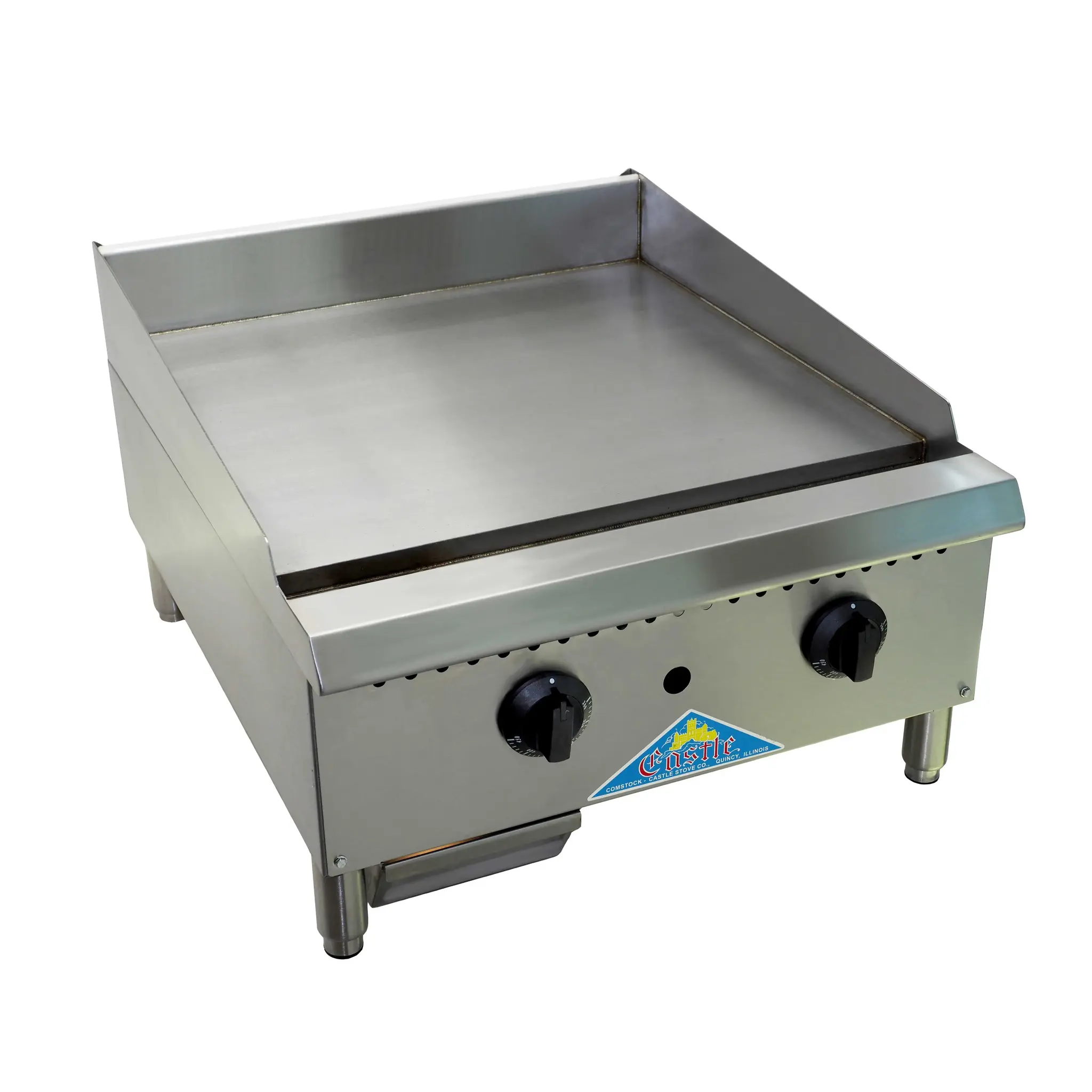 Introducing the Comstock-Castle CCHG-36-1 Gas Countertop Griddle, an innovative solution for mastering the art of cooking in commercial restaurants. With its smooth highly polished steel griddle plate, this 36" wide x 30" deep frame griddle offers a spacious cooking surface that ensures even heat distribution for perfect results every time. The three manual controls allow for precise temperature adjustments, while the 4" splash guard on the back and ends keeps your kitchen clean and safe. The 3" wide front grease trough and removable grease drawer make cleaning a breeze, promoting a hygienic cooking environment. Made with a stainless steel exterior and equipped with 4" stainless steel legs, this griddle is built to withstand the demands of a busy restaurant kitchen. With a powerful 90000 BTU, NSF certification, and ETL-Sanitation approval, the Comstock-Castle CCHG-36-1 Gas Countertop Griddle is the perfect addition to any commercial kitchen, ensuring efficiency, durability, and exceptional cooking results.