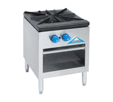 Stay ahead in the ever-evolving culinary landscape with the Comstock-Castle CSP18 Range. Designed for commercial restaurant use, this gas stock pot range is a game-changer in the kitchen. With its 18" width and double venturi cast iron burner, it delivers exceptional cooking performance and efficiency. The two manual controls allow for precise temperature adjustments, ensuring perfect results every time. The open front cabinet base provides convenient storage for pots, pans, and utensils, keeping your workspace organized and clutter-free. The cast iron top grate is not only durable but also easy to clean, saving you valuable time and effort. With a stainless steel exterior finish, this range is built to withstand the demands of a busy kitchen. With a powerful BTU range of 90000 - 110000, this NSF-certified stock pot range is a reliable and efficient addition to any commercial kitchen.
