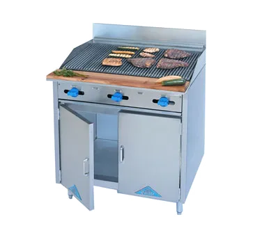 Craft exceptional dishes with professional-grade tools using the Comstock-Castle F33-3RB Range. This 36" gas range is designed specifically for commercial restaurant use, ensuring durability and high performance. The range features a 36" char-broiler with iron radiants, allowing you to achieve the perfect sear on meats and vegetables. The 33" wide cabinet base storage area, enclosed on three sides with a galvanized steel interior, provides ample space for storing pots, pans, and other kitchen essentials. With a stainless steel exterior and a 7" high backguard, this range not only looks sleek but is also easy to clean. The 6" stainless steel legs ensure stability and make it easy to move the range for cleaning purposes. With a cooking surface height of 37" and a powerful 93000 BTU, this range is NSF and cETLus certified, guaranteeing its safety and reliability. Upgrade your restaurant kitchen with the Comstock-Castle F33-3RB Range and elevate your culinary creations.