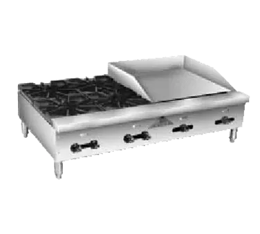 Optimize your kitchen workflow with versatile tools. Introducing the Comstock-Castle FHP36-24T Griddle / Hotplate, Gas, Countertop. This high-performance unit is designed to meet the demands of a commercial restaurant setting. With its two 24000 BTU star burners and two 12" x 12" cast iron hotplate grates, you can easily cook multiple dishes simultaneously. The 24" wide x 21" deep x 3/4" thick griddle provides ample space for preparing delicious meals. The stainless steel exterior ensures durability and easy cleaning, while the 4" stainless steel legs provide stability. Equipped with two thermostatic griddle controls and two manual burner controls, you have precise control over the cooking process. With a total of 88000 BTU, this unit delivers exceptional cooking power. NSF and ETL certified, this griddle/hotplate combination is a reliable addition to any commercial kitchen. Upgrade your restaurant's cooking capabilities with the Comstock-Castle FHP36-24T Griddle / Hotplate, Gas, Countertop.