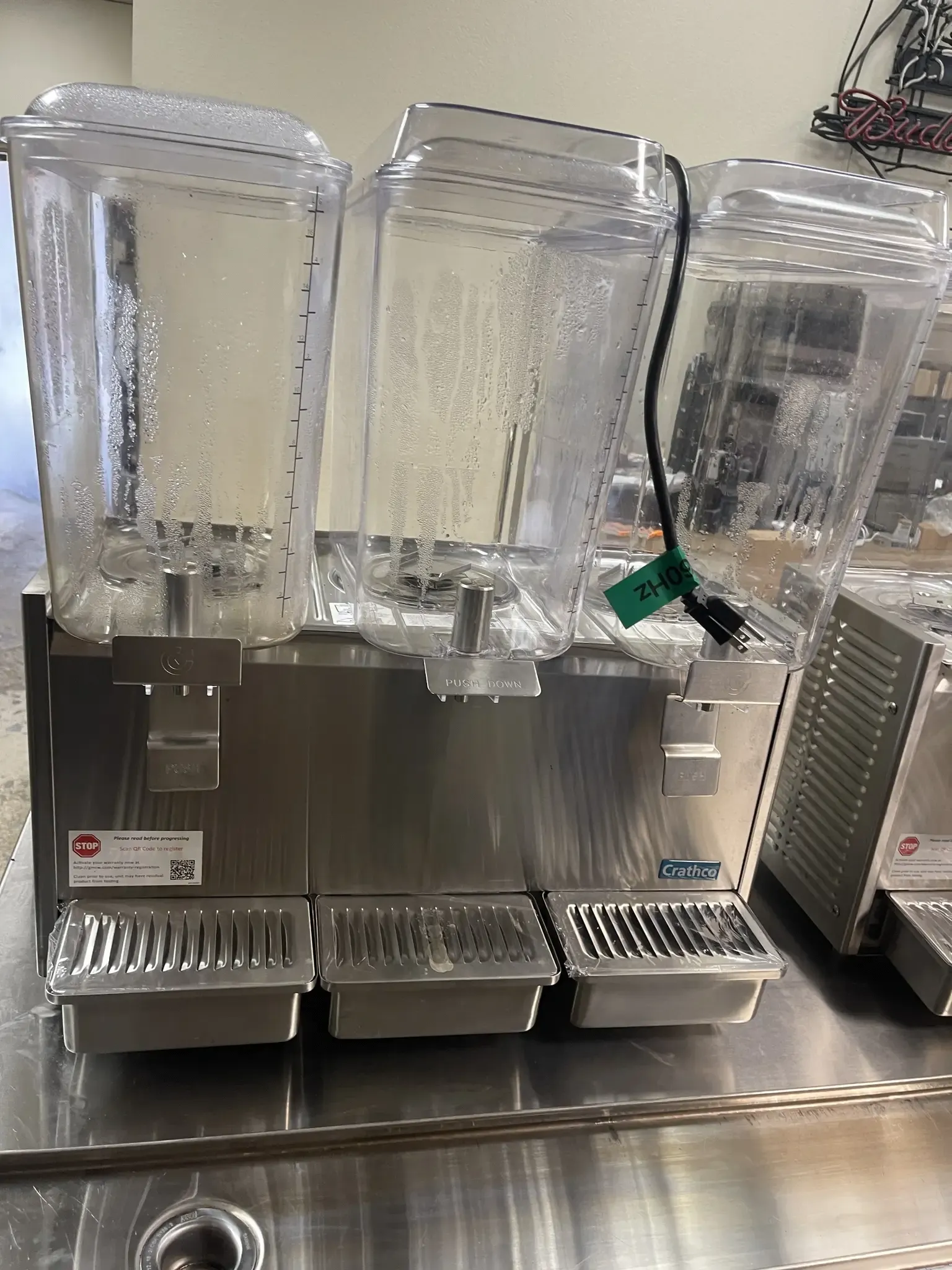 Serve your customers refreshing beverages all day long with the Crathco D35-3 Stainless Steel Cold Beverage Dispenser. Built for high-volume operations, this reliable 3-bowl drink machine keeps juices, teas, and cold drinks perfectly chilled and ready to pour. Its durable stainless-steel construction ensures long-lasting performance, while the sleek, professional design complements any beverage station or foodservice counter. Ideal for restaurants, cafes, and convenience stores that demand consistent quality and presentation.