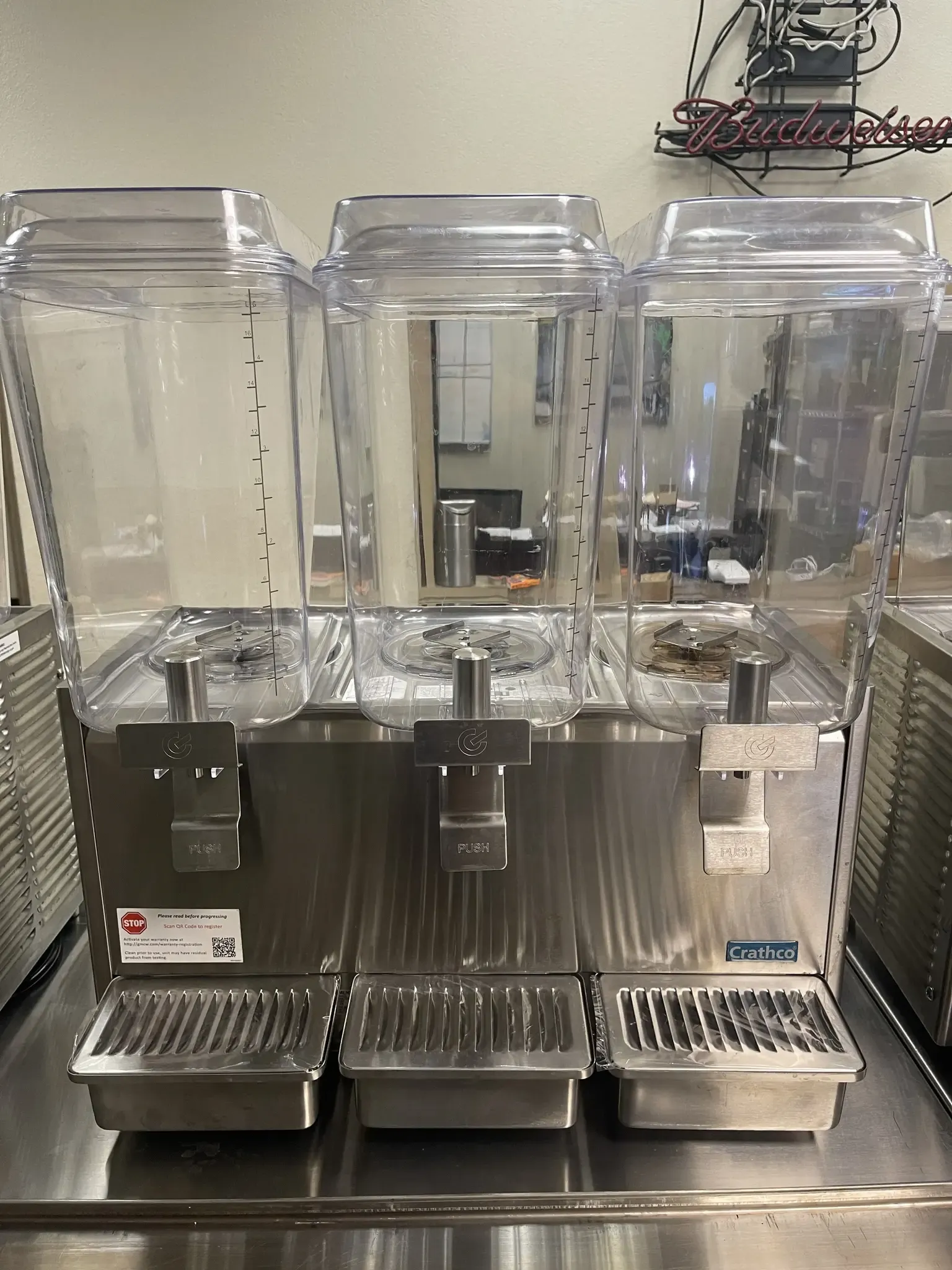 Serve your customers refreshing beverages all day long with the Crathco D35-3 Stainless Steel Cold Beverage Dispenser. Built for high-volume operations, this reliable 3-bowl drink machine keeps juices, teas, and cold drinks perfectly chilled and ready to pour. Its durable stainless-steel construction ensures long-lasting performance, while the sleek, professional design complements any beverage station or foodservice counter. Ideal for restaurants, cafes, and convenience stores that demand consistent quality and presentation.