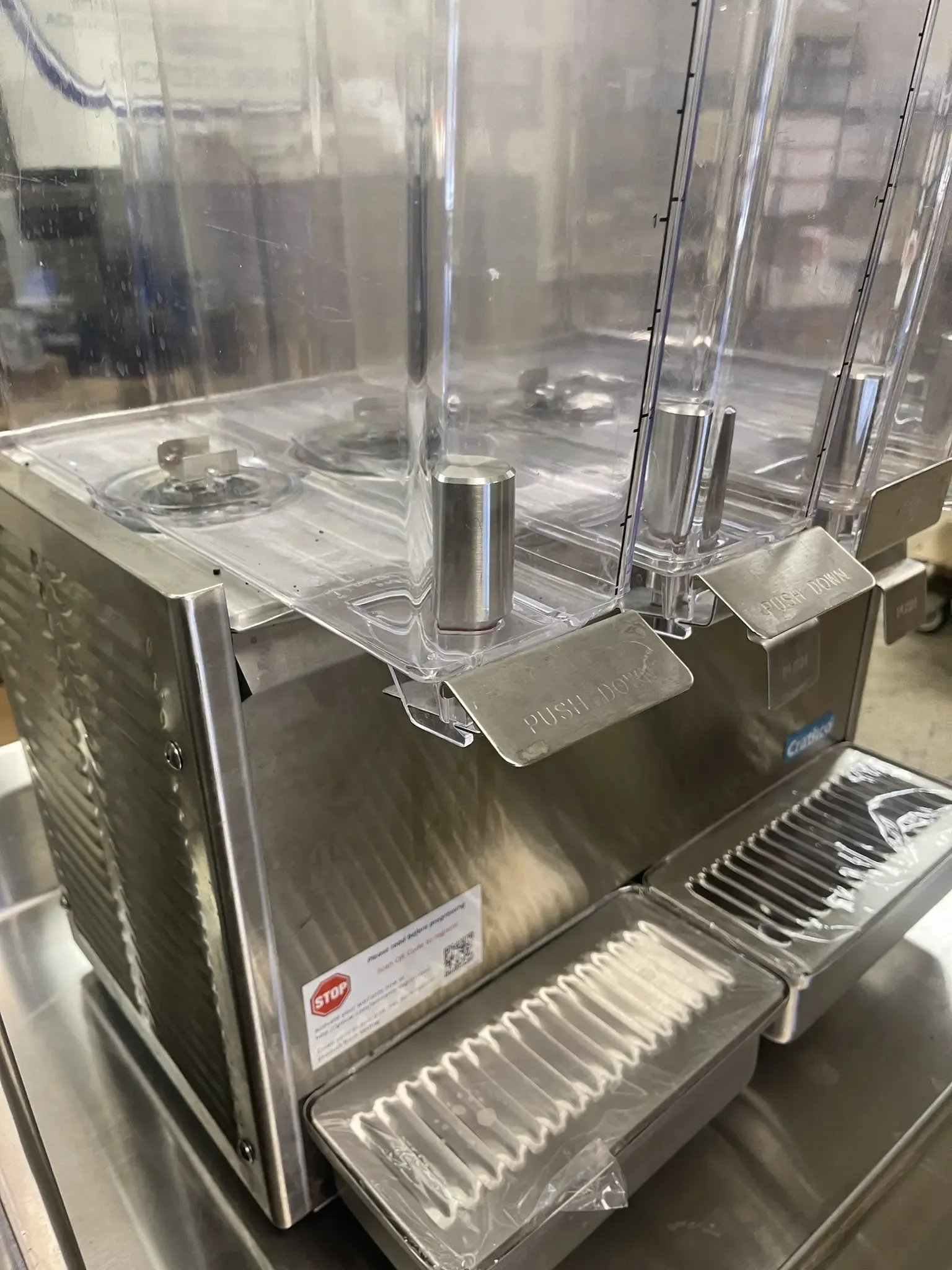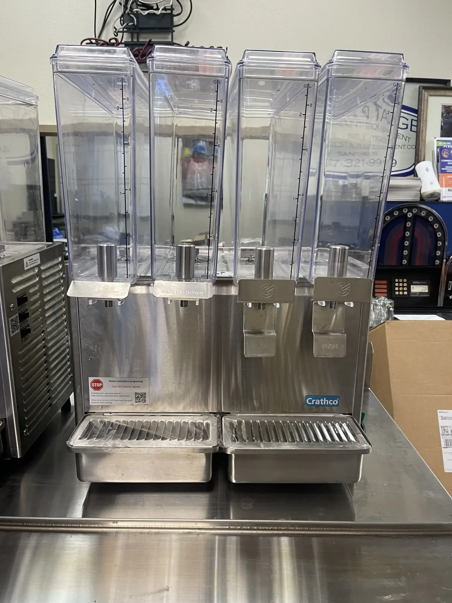 Serve multiple refreshing drink options with the Crathco E49-3 Four-Head Cold Beverage Dispenser — built for performance and consistency. Designed for high-traffic restaurants, cafes, and convenience stores, this durable dispenser keeps drinks ice-cold and flowing smoothly throughout the day. With easy-to-clean components and dependable cooling power, it’s the go-to choice for businesses that need both reliability and efficiency.