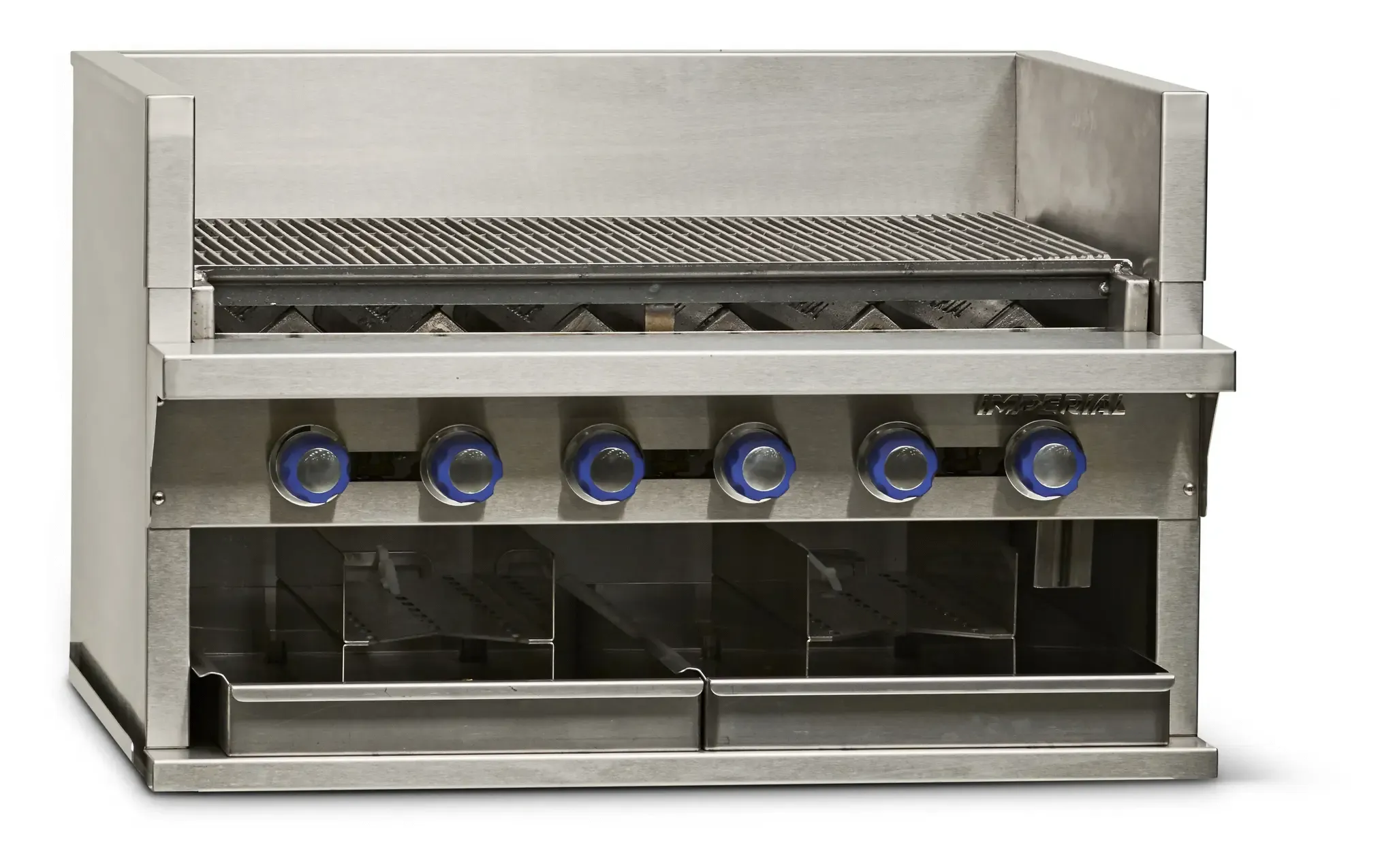 Upgrade your restaurant kitchen with the Imperial IABA-48 Charbroiler. This gas countertop charbroiler is designed to deliver exceptional performance and durability, making it the perfect addition to any commercial restaurant. With its eight stainless steel burners, cast iron radiants, and grates, this charbroiler ensures even heat distribution and excellent cooking results. The smoke system, equipped with three log holders, adds a delicious smoky flavor to your dishes, enhancing the taste and appeal of your menu items. The full-width grease gutter, removable grease can, and water pans make cleaning a breeze, allowing you to maintain a clean and sanitary cooking environment. Made with high-quality stainless steel, this charbroiler is built to withstand the demands of a busy kitchen. With a powerful 160,000 BTU output, the Imperial IABA-48 Charbroiler delivers the performance and reliability you need to elevate your restaurant's culinary offerings. Trust Imperial for all your commercial kitchen needs.