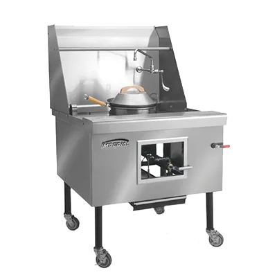 Invest in superior quality with the Imperial ICRA-8 Range Wok Gas. This high-performance wok range is designed to meet the demands of a busy commercial restaurant kitchen. With 8 burners and a water-cooled top, this wok range ensures efficient and consistent cooking results. The built-in drain system and Chinese swing faucet make it easy to clean and maintain. The knee "L" lever gas valve handle provides precise control over the heat, allowing chefs to create delicious stir-fries and other wok dishes with ease. The stainless steel front, landing ledge, backsplash, and pipe rack not only add durability but also give the wok range a sleek and professional look. With adjustable feet and 12-3/4" legs, this wok range can be easily customized to fit any kitchen layout. With an impressive 880,000 BTU, this wok range delivers the power and performance that commercial chefs need. Trust Imperial for all your commercial kitchen needs.