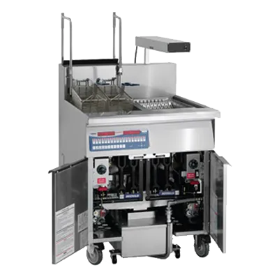 Introducing the Imperial, IFSCB150-OP-C, Fryer, Gas, Floor Model, Full Pot - the ultimate culinary powerhouse designed to dominate the culinary world. With its impressive 50lb. capacity and open pot design, this gas fryer is perfect for commercial restaurant use. The built-in filter system ensures hassle-free maintenance, while the 5.5 GPM roller pump guarantees efficient oil filtration. Equipped with computer controls, this fryer offers precise temperature regulation for consistent cooking results. The included food warmer and dump pan provide convenience and versatility, allowing you to keep your dishes hot and ready to serve. Made with durable stainless steel construction, this fryer is built to withstand the demands of a busy kitchen. The casters make it easy to move and clean, while the 140000 BTU burner ensures rapid heating. Trust Imperial to deliver exceptional performance and reliability, making this fryer a must-have for any commercial restaurant.