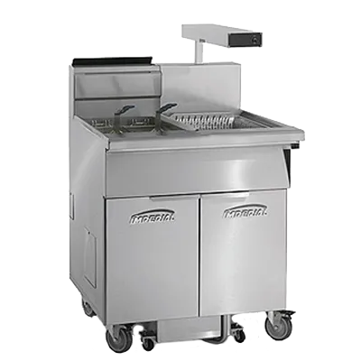 Unleash gastronomic brilliance with the Imperial, IFSCB250-OP Fryer, Gas, Multiple Battery. This floor model fryer is a game-changer for commercial restaurants, offering exceptional performance and efficiency. With a 50lb. capacity in each of its two batteries, this fryer allows for high-volume frying, ensuring that your kitchen can keep up with demand during peak hours. The open pot design and built-in filter system make cleaning and maintenance a breeze, while the 5.5 GPM roller pump ensures consistent oil flow for perfect frying results every time. The snap action thermostat allows for precise temperature control, while the drain station and cabinet provide convenience and organization. Additionally, this fryer comes with a food warmer, dump pan, joiner strips, and a filter starter kit, making it a comprehensive solution for all your frying needs. Crafted with stainless steel frypot, front, sides, landing ledge, and cabinet, this fryer is built to withstand the rigors of a commercial kitchen. With its 280000 BTU power and 120v/60/1-ph, 6.8 amps, 1/3 HP electrical requirements, this fryer is a reliable and efficient addition to any restaurant. Trust in the quality and performance of the Imperial, IFSCB250-OP Fryer, Gas, Multiple Battery to elevate your culinary creations and streamline your kitchen operations.