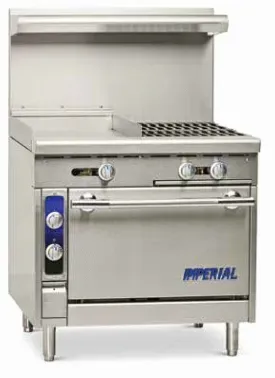 Unleash your inner chef with the Imperial, IHR-G18-2, Range, 36" Heavy Duty, Gas. This Diamond Series Heavy Duty Range is designed to meet the demands of a busy commercial restaurant kitchen. With two open burners and an 18" griddle, you have the versatility to cook a variety of dishes simultaneously. The cast iron grates provide even heat distribution, ensuring consistent cooking results every time. The standard oven comes with a chrome rack, allowing you to bake or roast with ease. The 4"W grease gutter and removable crumb tray make cleaning up a breeze, while the stainless steel construction ensures durability and longevity. The adjustable feet and 6" legs provide stability and flexibility in any kitchen layout. With a powerful 150,000 BTU, this range is cETLus, ETL, and NSF certified, guaranteeing its safety and reliability. Upgrade your kitchen with the Imperial, IHR-G18-2, Range, 36" Heavy Duty, Gas and experience professional-grade cooking performance.