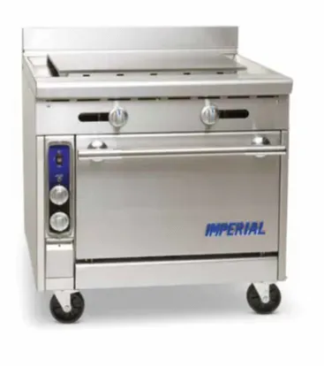 Invest in superior quality with the Imperial, IHR-PL36-C, Range, 36" Heavy Duty, Gas. This Diamond Series Heavy Duty Range is designed to meet the demands of a commercial restaurant kitchen. With its 1/2" thick steel plate plancha top, this range provides even heat distribution and excellent heat retention, making it perfect for searing and grilling. The convection oven comes with three chrome racks, allowing you to cook multiple dishes simultaneously. The grease gutter ensures easy cleaning and maintenance, while the stainless steel construction of the front, sides, landing ledge, backguard, and kick plate guarantees durability and longevity. The adjustable feet and 6" legs provide stability and flexibility in any kitchen layout. With a powerful 1/4 HP motor and 65000 BTU, this range delivers exceptional performance. Trust Imperial for top-notch quality and efficiency in your commercial kitchen.