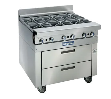 Cook with precision using the Imperial, IHR-XX-SC-36 Equipment Stand with Refrigerated Base. This Diamond Series Sizzle N Chill System is designed to meet the demands of a busy commercial restaurant kitchen. With its 36" size, it provides ample space for your culinary creations. The system features two drawers with a four-pan capacity, allowing for efficient organization and easy access to ingredients. The digital thermostat ensures accurate temperature control, while the self-contained design eliminates the need for additional refrigeration units. Made with stainless steel front, drawer fronts, sides, guides, and bearings, this equipment stand is built to withstand the rigors of a professional kitchen. The included drawer dividers help keep your ingredients separated and organized. With casters for easy mobility, a 120v/60/1-ph power supply, and a 1/5 HP motor, this equipment stand is a reliable and convenient addition to any commercial restaurant. Trust Imperial for quality and durability.