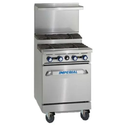 Culinary excellence in every dish starts with the Imperial, IR-4-SU-XB, Range, 24" Restaurant, Gas. This top-of-the-line restaurant range is designed to meet the demands of a busy commercial kitchen. With its two open burners and two step-up open burners, this range offers versatility and precision in cooking. The open cabinet and bottom shelf provide ample storage space for pots, pans, and other kitchen essentials, while the stainless steel construction ensures durability and easy cleaning. The front, sides, backguard, landing ledge, and kick plate are all made of stainless steel, adding a sleek and professional look to any restaurant kitchen. Equipped with 6" legs and adjustable feet, this range can be easily positioned and leveled to fit any kitchen layout. With a powerful 128,000 BTU output, this range delivers quick and efficient cooking results. NSF, CE, CSA Flame, and CSA Star certifications guarantee the highest standards of safety and quality. Elevate your culinary creations with the Imperial, IR-4-SU-XB, Range, 24" Restaurant, Gas.