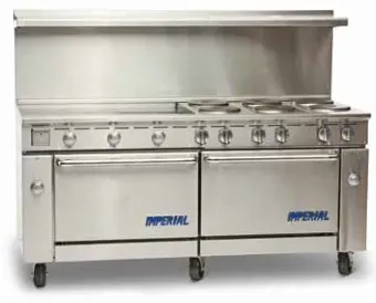 Maximize your food service potential with the Imperial IR-6-G36T-E Range, a top-of-the-line electric restaurant range designed to meet the demands of a busy commercial kitchen. This range features six round elements and a 36" thermostatic griddle, allowing you to cook a variety of dishes simultaneously with precision temperature control. The two standard ovens provide ample space for baking and roasting, and each oven comes with a chrome rack for easy food placement. The porcelain oven interior ensures even heat distribution, while the stainless steel front, sides, backguard, landing ledge, and kick plate provide durability and easy cleaning. With infinite heat controls and adjustable feet, you have complete control over your cooking process. The Imperial IR-6-G36T-E Range is cETLus, ETL-Sanitation, and CE certified, guaranteeing its safety and reliability. Upgrade your restaurant kitchen with this high-performance electric range and experience enhanced efficiency and productivity.