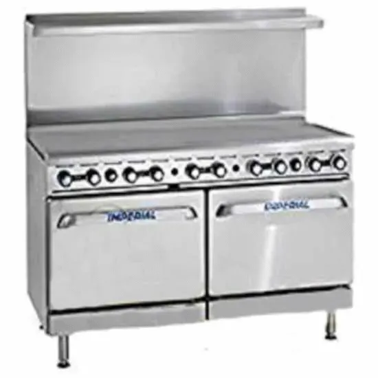 Culinary artistry redefined with the Imperial IR-G60T-E-CC Range, 60" Restaurant, Electric. This top-of-the-line restaurant range is designed to meet the demands of a busy commercial kitchen. With its 60" size, it provides ample cooking space for preparing multiple dishes simultaneously, making it perfect for high-volume restaurants. The griddle feature allows for versatile cooking options, while the two convection ovens ensure even and efficient cooking results. The thermostatic controls provide precise temperature management, allowing chefs to achieve perfect cooking results every time. The three chrome racks per oven offer plenty of space for baking multiple items at once. The removable grease can and crumb tray make cleaning a breeze, while the porcelain oven interior ensures durability and easy maintenance. With its stainless steel construction and adjustable feet, this range is built to withstand the rigors of a commercial kitchen. Trust Imperial for exceptional quality and performance.