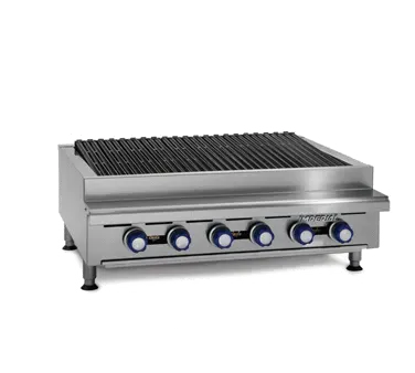 Unleash gastronomic brilliance with the Imperial, IRB-30, Charbroiler, Gas, Countertop. This high-quality charbroiler is designed to meet the demands of a busy commercial restaurant kitchen. With its cast iron radiants and slanted top grates, it ensures even heat distribution and perfect grill marks on your meats and vegetables. The full-width grease gutter and removable drip pan make cleaning a breeze, allowing you to maintain a clean and efficient workspace. The stainless steel burners, front, sides, and landing ledge not only provide durability but also add a sleek and professional look to your kitchen. The adjustable feet and 4" legs allow for easy installation and customization to fit your countertop height. With a powerful 75000 BTU, this charbroiler delivers exceptional performance and efficiency. Trust in the Imperial, IRB-30, Charbroiler, Gas, Countertop to elevate your culinary creations and impress your customers.