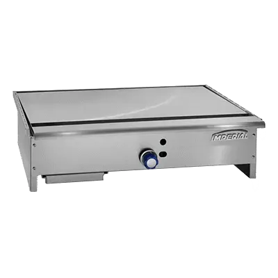 Maximize your food service potential with the Imperial ITY-36 Teppanyaki Griddle. This gas countertop griddle is perfect for commercial restaurant use, offering a 36" polished steel plate that is 3/4" thick. The griddle features a center hot spot, ensuring even heat distribution for consistent cooking results. With manual controls, you have full control over the temperature, allowing you to cook a variety of dishes to perfection. The 4"W grease trough and removable grease can make cleaning up a breeze, while the stainless steel front, sides, and ledge provide durability and a sleek appearance. With a powerful 30000 BTU, this griddle is capable of handling high-volume cooking. Certified by cETLus and NSF, you can trust in the quality and safety of this Imperial Teppanyaki Griddle. Upgrade your restaurant kitchen with this reliable and efficient cooking equipment.
