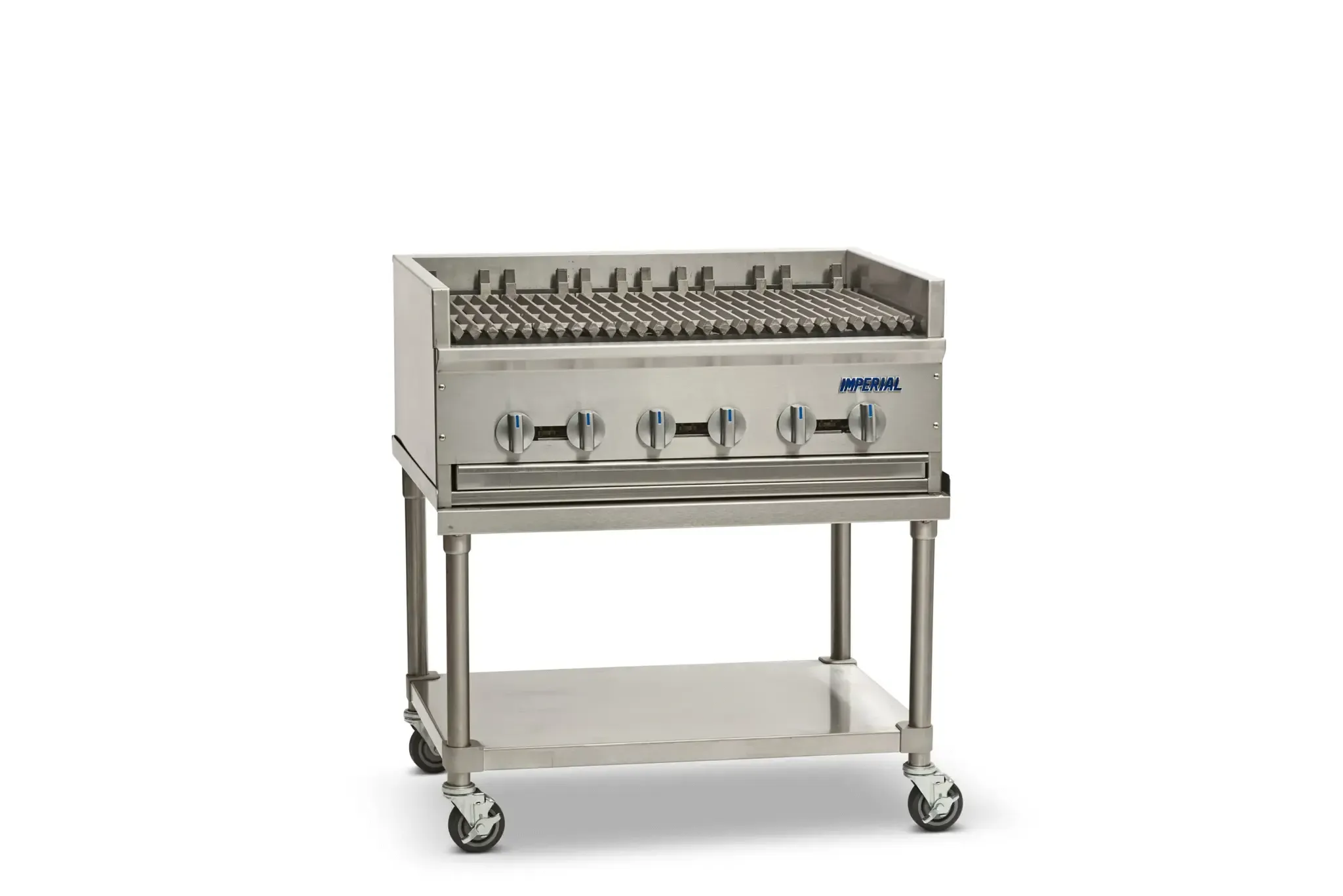 Achieve culinary excellence with the Imperial PSB60 Radiant Broiler. This professional countertop broiler is designed to elevate your restaurant's cooking capabilities. With its stainless steel front, sides, stub back, landing ledge, and cabinet, this broiler not only looks sleek but also ensures durability and easy cleaning. The welded and polished stainless steel seams further enhance its longevity. The control knobs are made of durable die-cast metal, providing precise temperature control for your culinary creations. For added convenience, you have the option to equip the broiler with 6" heavy-duty legs with adjustable feet. The 3/4" rear gas connection allows for easy installation, and the gas shut-off valve and pressure regulator ensure safety and efficiency. Whether you're grilling steaks, searing seafood, or caramelizing vegetables, the Imperial PSB60 Radiant Broiler is the perfect addition to any commercial restaurant kitchen.