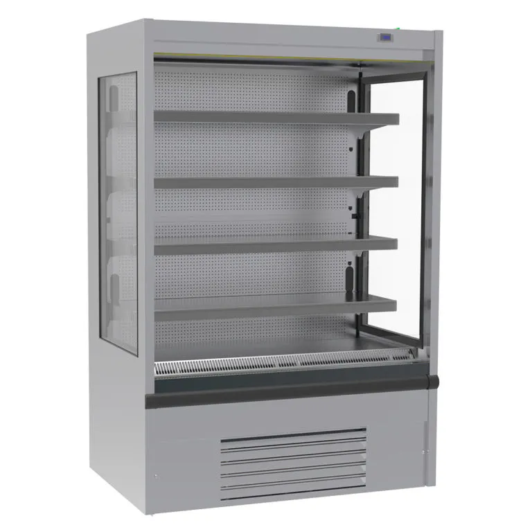 Infrico's Grab and Go Merchandisers, featuring a temperature range of 33°F to 41°F, offer convenient access for customers. These units, powered by a 1 HP compressor, have a current draw of 17.9 Amps, providing efficient cooling for grab-and-go items.
