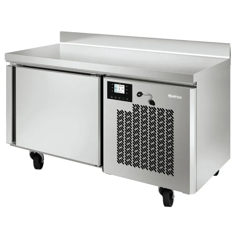 Infrico's 7 trays Blast Chillers/Shock Freezers with a tabletop design provide versatility in your kitchen. With a 1-1/4 HP compressor and 16.1 Amps, this unit offers efficient cooling to -40°F, making it a valuable addition to any food preparation area.