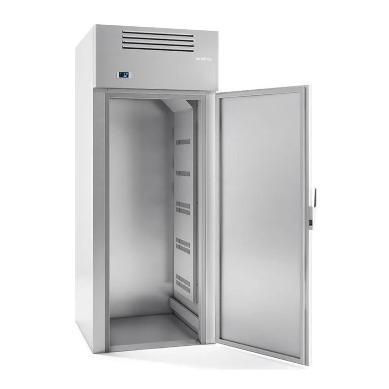Infrico's 1 Section Roll-in Refrigerator with a 66-1/4" cart capacity offers convenient storage with a single door, providing easy access for carts. With a 1/2 HP compressor and 6 Amps, this unit maintains a temperature range of 33°F to 38°F, ensuring efficient cooling for your stored items.