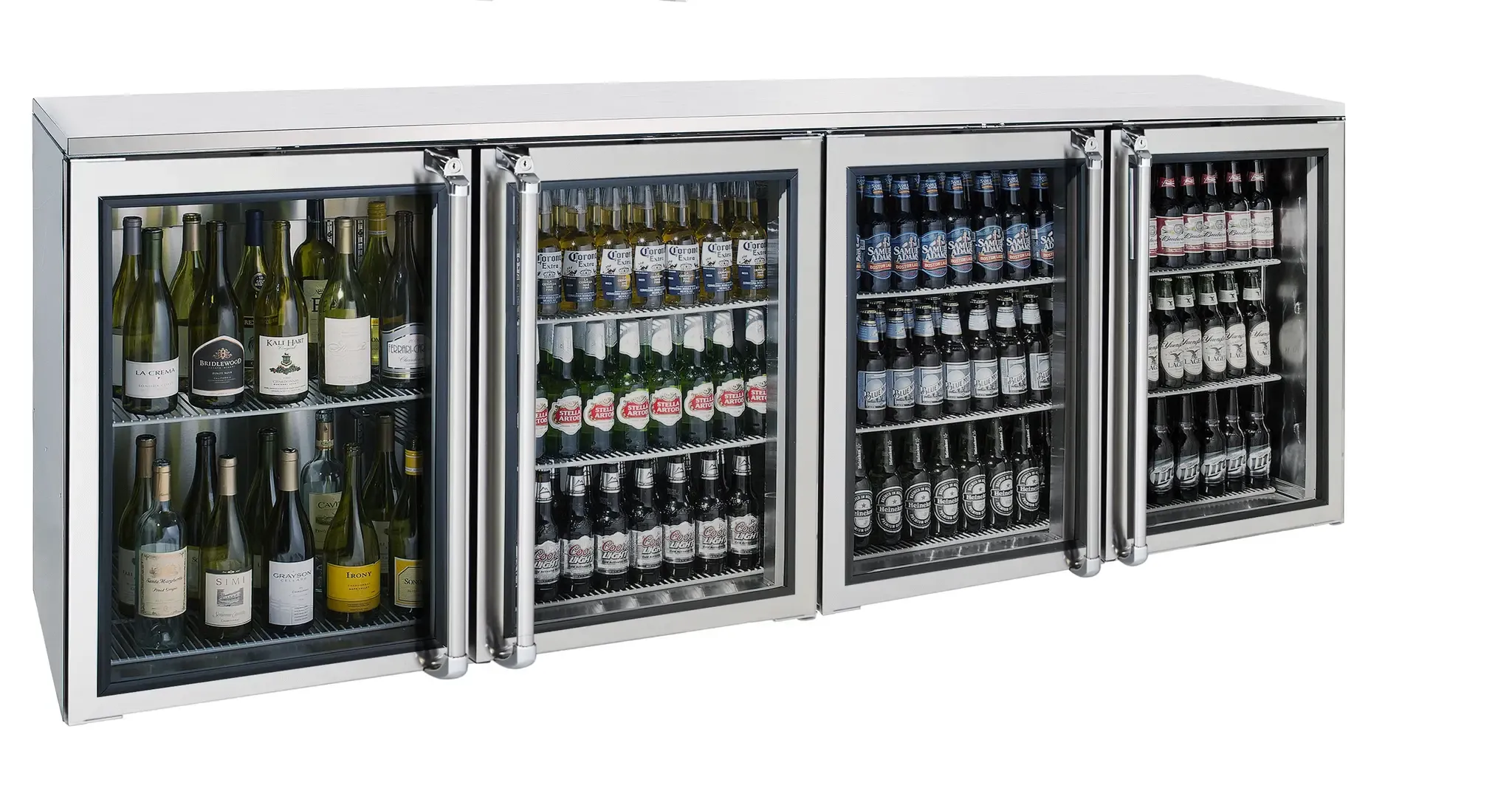 Master the art of cooking with the Krowne Metal BR96R-KNS-RRRR Refrigeration- Remote Back Bar Cooler. This top-of-the-line cooler is designed to meet the needs of commercial restaurants, ensuring that your ingredients and beverages are kept at the perfect temperature. With its stainless steel glass right doors, this cooler not only provides easy access to your products but also adds a touch of elegance to your establishment. The Krowne Metal BR96R-KNS-RRRR features a spacious 96" design, allowing you to store a large quantity of items without sacrificing valuable kitchen space. Its remote back bar design ensures quiet operation, creating a peaceful environment for your customers. Whether you need to chill bottles of wine, keep your craft beers cold, or store ingredients for your signature cocktails, this back bar cooler is the perfect addition to any commercial kitchen. Trust Krowne Metal to deliver exceptional quality and reliability with the BR96R-KNS-RRRR Refrigeration- Remote Back Bar Cooler.