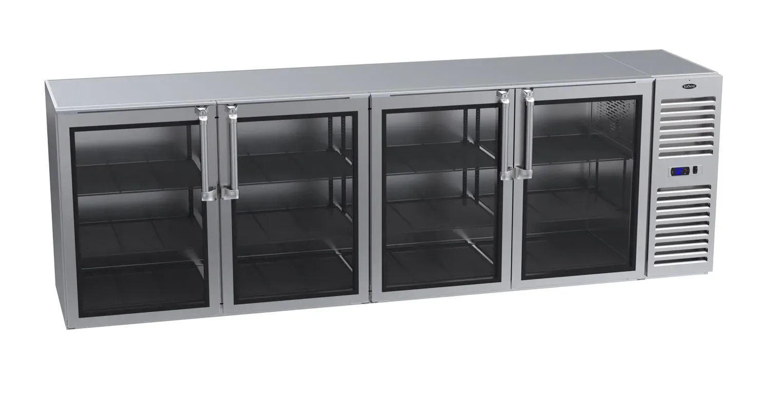 Introducing the Krowne Metal BS108R-KNS-RLLR, a top-of-the-line self-contained back bar cooler designed to simplify restaurant operations. This refrigeration unit is a game-changer for commercial restaurants, offering unmatched convenience and efficiency. With its spacious 108" size, it provides ample storage space for beverages, ensuring that your customers never go thirsty. The right cabinet features stainless steel glass doors, allowing for easy visibility and access to your drink selection. The left cabinet also boasts glass doors, providing a stylish showcase for your premium liquors. The Krowne Metal BS108R-KNS-RLLR is packed with features that make it perfect for a busy restaurant environment. Its self-contained design means there's no need for additional refrigeration equipment, saving you valuable space and money. Plus, the unit is built to last, with durable construction and a reliable cooling system. Upgrade your restaurant's beverage service with the Krowne Metal BS108R-KNS-RLLR and experience the difference in efficiency and customer satisfaction.