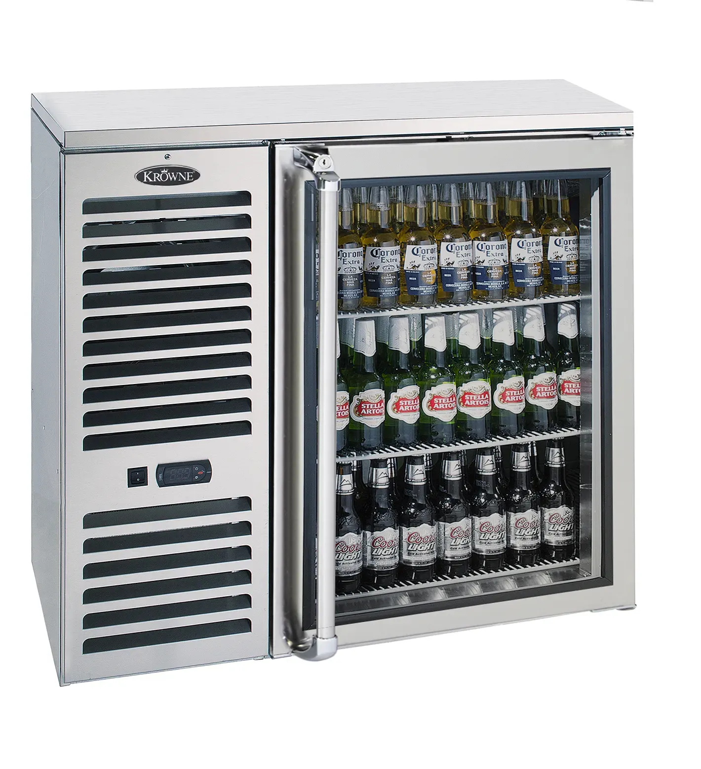 Experience kitchen innovation with the Krowne Metal, BS36L-KSS-L Back Bar Refrigeration. This Royal Series 36" Self-Contained One-Door Back Bar Cooler is designed to meet the demands of a commercial restaurant. With its glass and stainless steel doors, top, and sides, this cooler not only looks sleek but also ensures durability and easy maintenance. The self-contained feature allows for easy installation and operation, making it a convenient addition to any bar or restaurant. The spacious interior provides ample storage space for beverages, while the glass doors allow for easy visibility and access. Whether you need to keep your drinks chilled or display them attractively, this back bar cooler is the perfect solution. Trust Krowne Metal, a reputable vendor in the industry, and invest in this high-quality back bar refrigeration unit to enhance your restaurant's efficiency and aesthetics.