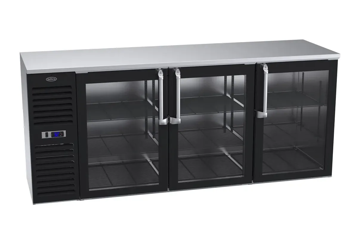 Upgrade your restaurant kitchen with the Krowne Metal BS84L-GSS-RRL Refrigeration- Self-Contained Back Bar Cooler. This top-of-the-line cooler is designed to meet the demands of a busy commercial restaurant. With its 84" size, it provides ample storage space for all your beverages and ingredients. The self-contained feature means that it doesn't require any additional refrigeration units, saving you both space and money. The left cabinet comes with one door, while the right cabinet has two doors, allowing for easy access and organization. The stainless steel construction ensures durability and easy cleaning, while the royal design adds a touch of elegance to your establishment. Whether you need to keep your drinks chilled or your ingredients fresh, this back bar cooler is the perfect addition to your restaurant. Trust Krowne Metal, a reputable vendor in the industry, to deliver a high-quality product that will enhance your kitchen's efficiency and aesthetics.