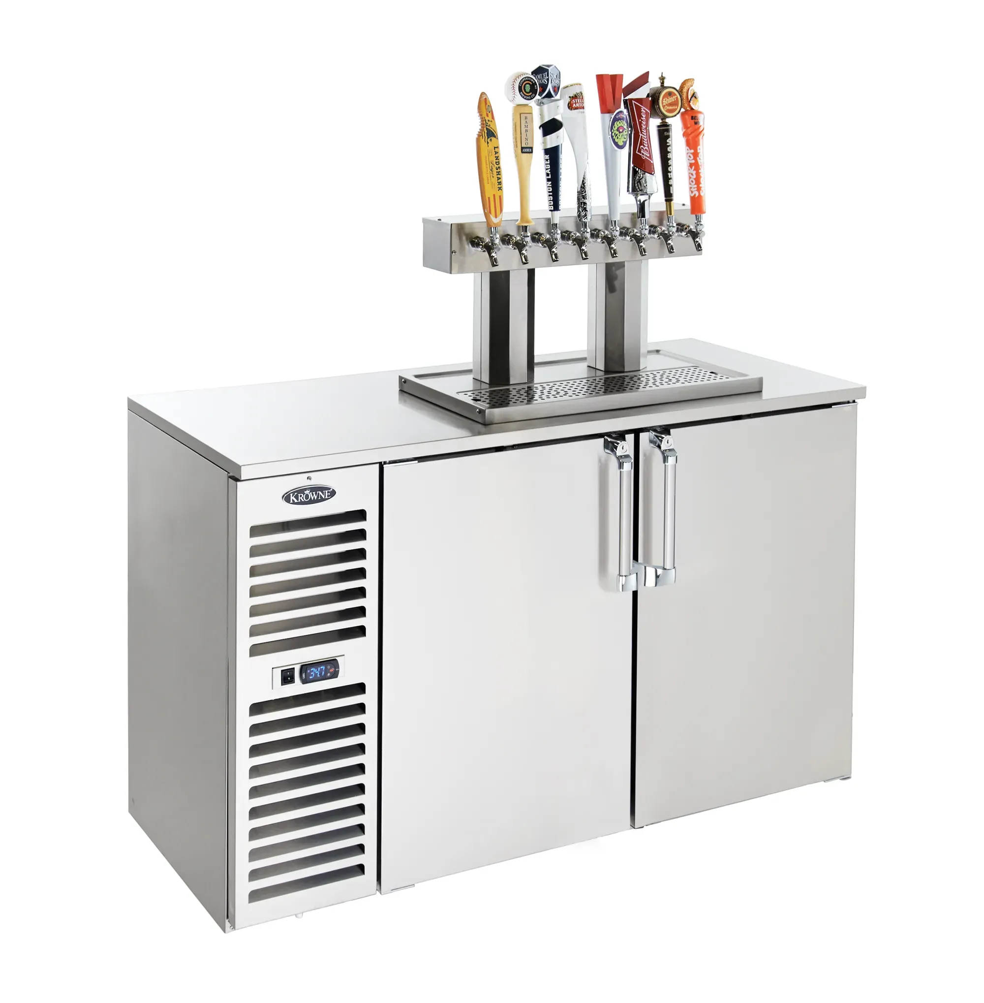 Boost your restaurant's performance with the Krowne Metal DB60R-BSS-LR Refrigeration- Self-Contained Direct Draw Coolers. This top-of-the-line draft beer cooler is designed to meet the demands of a busy commercial restaurant. With its sleek stainless steel top and sides, it not only looks great but also ensures durability and easy cleaning. The black vinyl doors add a touch of elegance to any establishment. Equipped with two faucets and a drainer, this cooler allows for efficient and convenient beer dispensing. The self-contained design eliminates the need for a separate refrigeration system, saving valuable space in your kitchen. Whether you're running a bar, pub, or restaurant, the Krowne Metal DB60R-BSS-LR Refrigeration- Self-Contained Direct Draw Coolers will enhance your beverage service and keep your customers coming back for more.