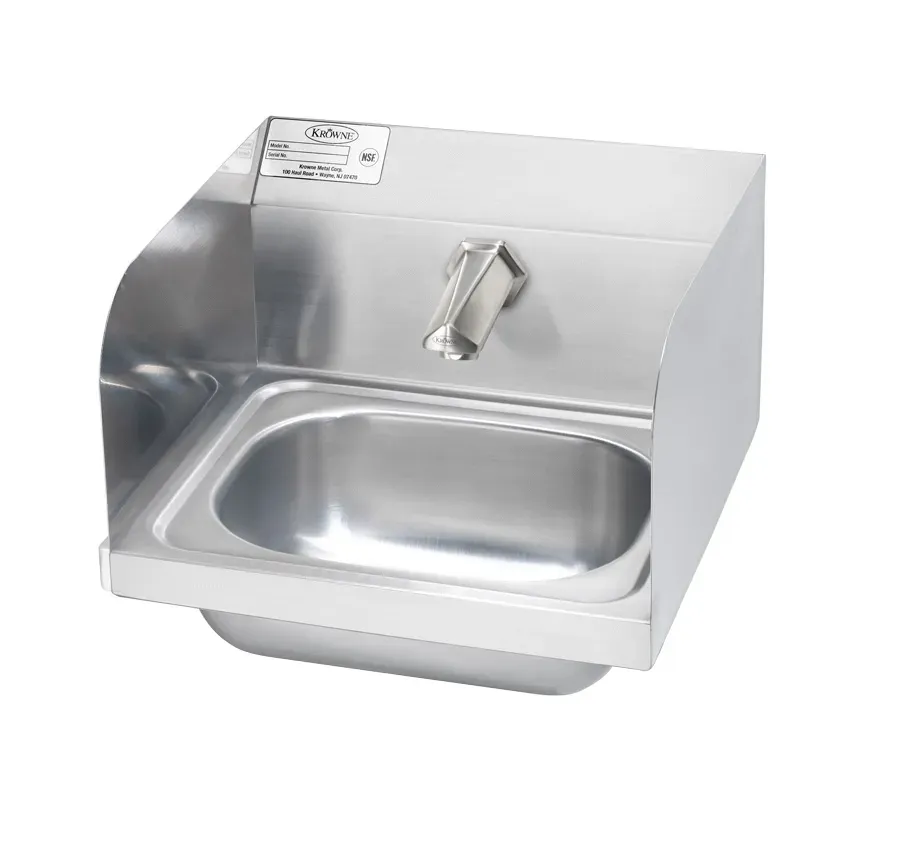 Introducing the Krowne Metal HS-70 Hand Sink, the perfect addition to any commercial restaurant looking to dominate the culinary world. This 16" wide wall mount hand sink is designed with the needs of busy kitchens in mind. With its satin single hole electronic faucet and side splashes, this hand sink ensures optimal hygiene and cleanliness. The electronic faucet allows for easy and touch-free operation, reducing the risk of cross-contamination. The side splashes help contain water and prevent spills, keeping the surrounding area dry and safe. Made by Krowne Metal, a trusted name in the industry, this hand sink is built to last and withstand the demands of a busy restaurant environment. Whether you're a small cafe or a large-scale restaurant, the Krowne Metal HS-70 Hand Sink is a must-have for maintaining a clean and efficient workspace.