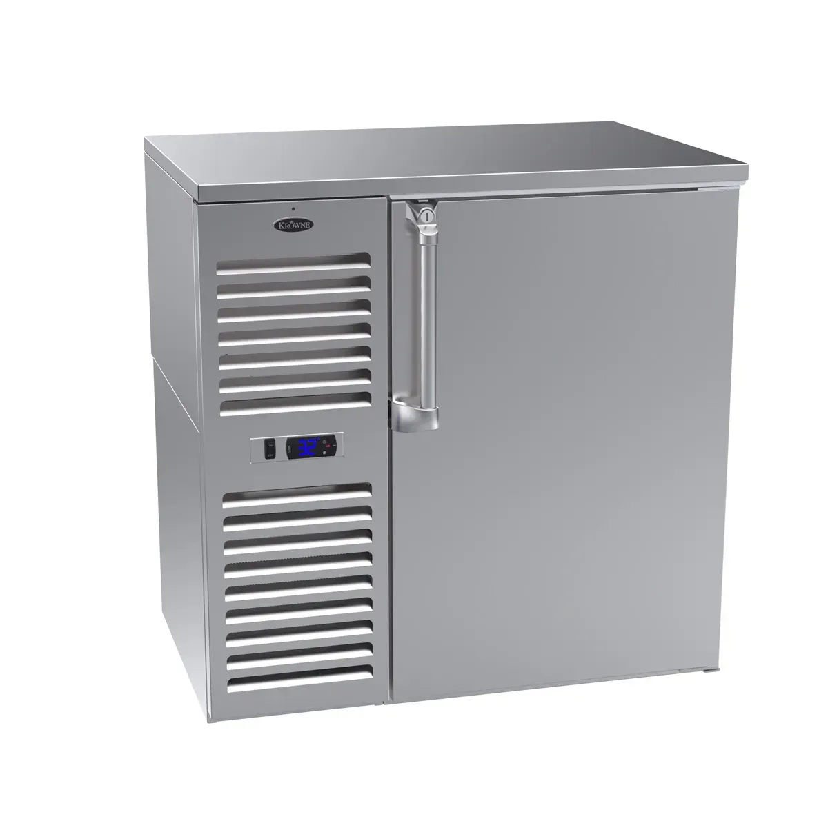 Elevate your culinary experience with the Krowne Metal KPT36L Backbar Cooler. This commercial-grade cooler is designed to meet the demands of a busy restaurant kitchen. With doors on both sides, it offers easy access from the front and back, making it convenient for staff to retrieve and restock items. The heavy-duty self-closing doors ensure that the cooler remains sealed, preserving the freshness of your ingredients. Equipped with built-in Cool White LED lighting, this cooler provides excellent visibility, allowing you to easily locate items. The digital thermostat allows for precise temperature control, ensuring that your food and beverages are stored at the optimal temperature. The DynamicChill 360 Technology evenly distributes cold air throughout the cooler, keeping all your items consistently chilled. The heated mullion helps minimize condensation, preventing moisture buildup. Approved for NSF 7 Open Food Storage, this cooler meets the highest standards of food safety. The NSF epoxy coated durable shelves are adjustable, allowing you to customize the storage space to suit your needs. With its eco-friendly refrigerant and insulation, this backbar cooler is not only efficient but also environmentally friendly. Upgrade your restaurant's refrigeration system with the Krowne Metal KPT36L Backbar Cooler.