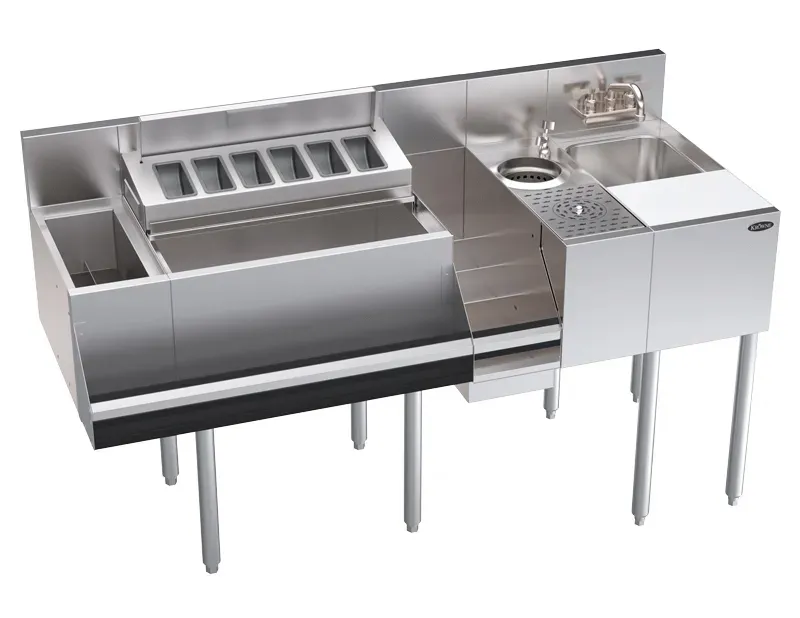 Experience kitchen innovation with the Krowne Metal KR24-MX60-10 Mixology Station. This 60" single craft cocktail workstation is designed to enhance efficiency and productivity in any commercial restaurant setting. With its 10-circuit cold plate, you can easily keep your beverages chilled and ready to serve, ensuring customer satisfaction and reducing wait times. The Krowne Metal Mixology Station is packed with features that make it a must-have for mixologists and bartenders. Its spacious 60"W x 24"D underbar design provides ample workspace for preparing and serving drinks, while the 10-circuit cold plate allows for multiple drink options without compromising on quality. This mixology station is built to last, with Krowne Metal's reputation for durability and reliability. Whether you're running a busy bar or a high-end restaurant, the Krowne Metal KR24-MX60-10 Mixology Station is the perfect addition to your commercial kitchen.