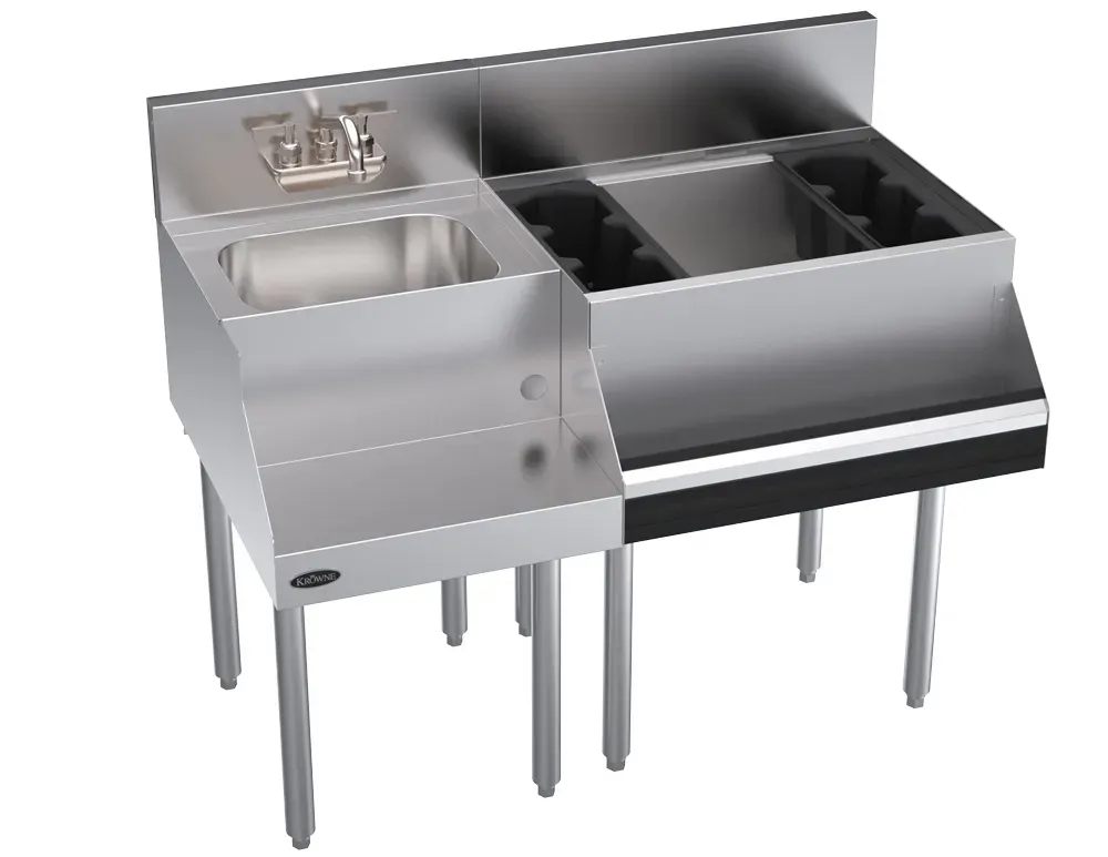 Unleash gastronomic brilliance with the Krowne Metal KR24-W42R-10 Workstation. This Royal Series 42" Blender/Ice Bin Workstation with Cold Plate is a must-have for any commercial restaurant. Designed by Krowne Metal, a trusted vendor in the industry, this workstation is built to deliver exceptional performance and durability. The 42"W x 24"D underbar workstation provides ample space for blending and ice storage, making it perfect for busy establishments. The included cold plate ensures that your beverages stay chilled and refreshing, even during peak hours. With its sleek design and high-quality construction, this workstation is not only functional but also adds a touch of elegance to your restaurant. Whether you're blending smoothies, crafting cocktails, or serving up icy beverages, the Krowne Metal KR24-W42R-10 Workstation is the ultimate solution for your commercial kitchen. Trust Krowne Metal to deliver excellence in every detail.
