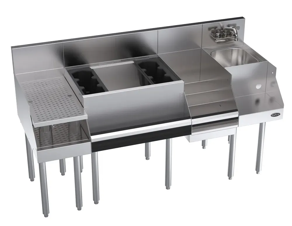 Cook with confidence with the Krowne Metal KR24-W60C-10 Workstation. This Royal Series 60" Recessed Drainboard/Ice Bin/Blender/Liquor Display Workstation with Cold Plate is a must-have for any commercial restaurant. With its versatile design, this workstation offers a range of features that will enhance your kitchen operations. The 60"W x 24"D underbar workstation provides ample space for food preparation, while the recessed drainboard and ice bin make it easy to keep ingredients fresh and accessible. The built-in blender and liquor display add a touch of elegance to your bar area, allowing you to showcase your finest spirits. The 10 circuit cold plate ensures that your beverages stay chilled, even during the busiest of shifts. Upgrade your restaurant's efficiency and style with the Krowne Metal KR24-W60C-10 Workstation.