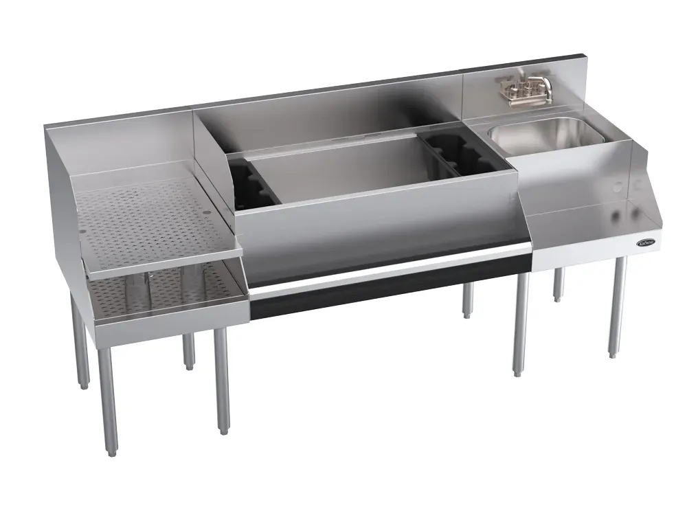 Introducing the Krowne Metal KR24-W72B-10 Workstation, designed to help you dominate the culinary world. This Royal Series 72" Recessed Drainboard/Ice Bin/Blender Workstation with Cold Plate is a game-changer for commercial restaurants. With its spacious 72"W x 24"D dimensions, this workstation provides ample space for food preparation, making it perfect for high-volume kitchens. The recessed drainboard ensures efficient water drainage, keeping your workspace clean and organized. The built-in ice bin allows for easy access to ice, essential for refreshing beverages and cocktails. The blender workstation with a cold plate ensures that your blended creations stay chilled, maintaining their quality and taste. Don't settle for anything less than the best. Choose the Krowne Metal KR24-W72B-10 Workstation and elevate your culinary experience.