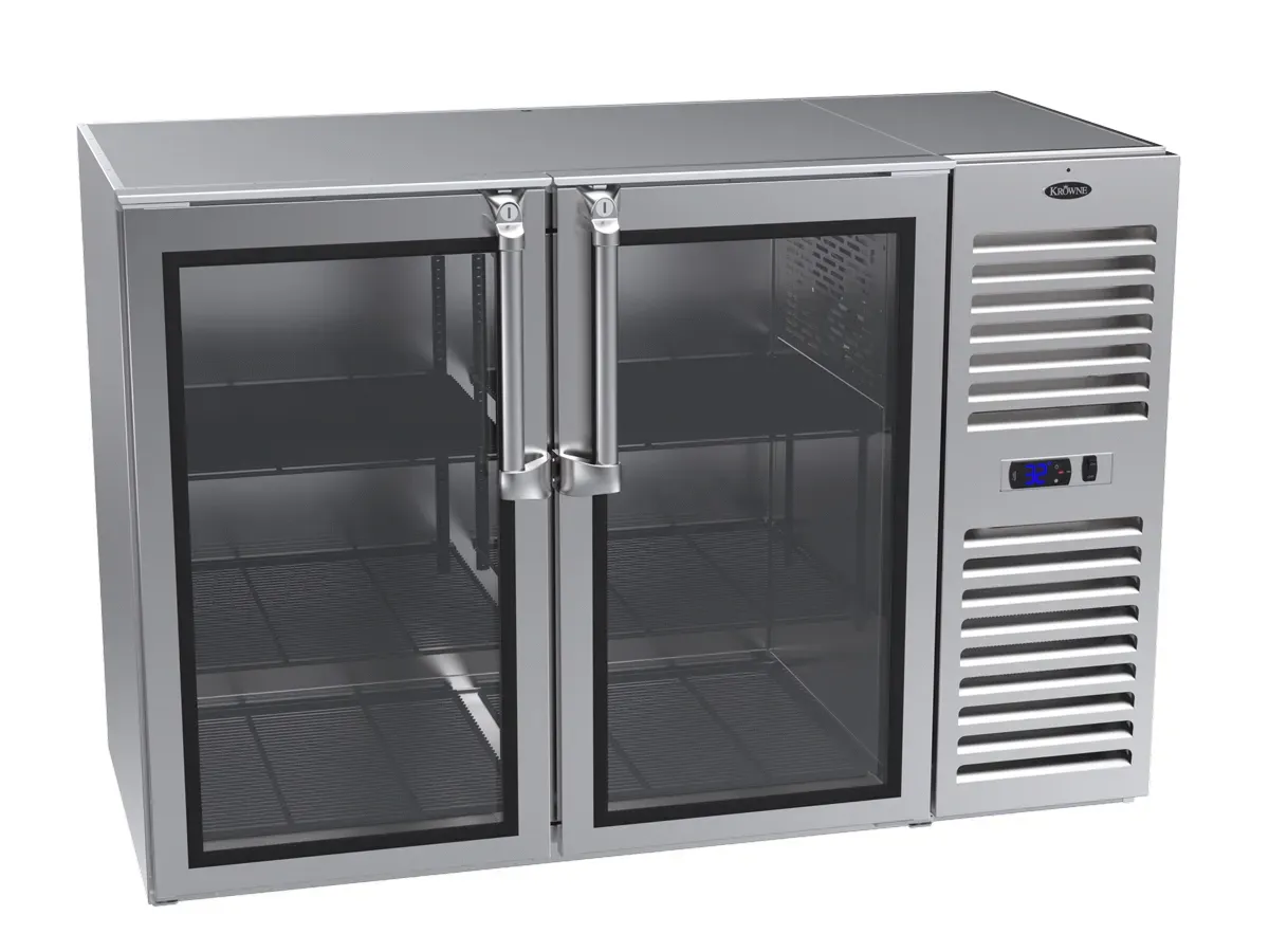 Achieve kitchen supremacy with the Krowne Metal NS52R-KNS-RL Refrigeration- Self-Contained Narrow Door Back Bar. This top-of-the-line back bar cooler is designed to meet the demands of a busy commercial restaurant. With its 52" narrow door cabinet, it provides ample storage space for all your beverages. The stainless steel glass doors on the right and left sides not only add a touch of elegance but also allow for easy visibility of the contents inside. The self-contained design ensures efficient cooling without the need for additional equipment. Whether you're serving chilled beers, refreshing sodas, or crisp wines, this back bar cooler keeps your drinks at the perfect temperature. Upgrade your restaurant's refrigeration system with the Krowne Metal NS52R-KNS-RL and experience the convenience and reliability it brings to your establishment.