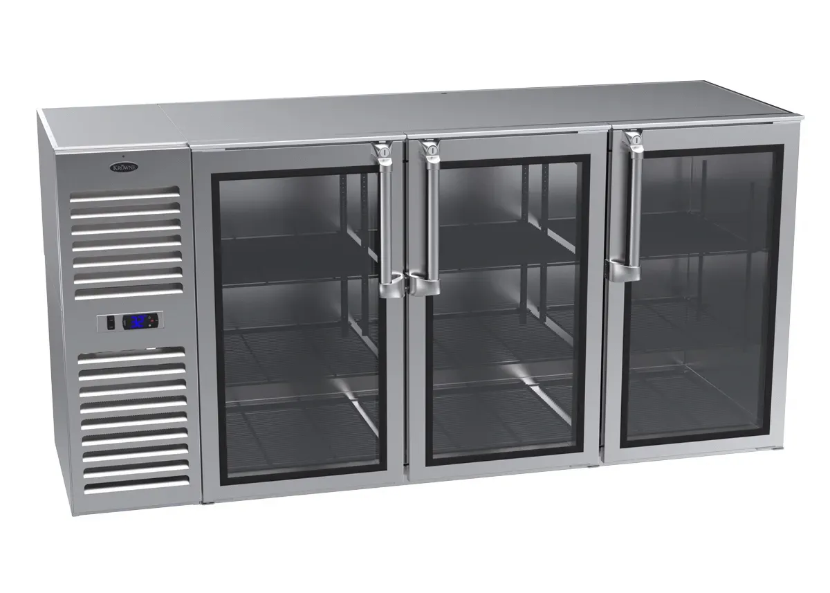 Unleash gastronomic brilliance with the Krowne Metal NS72L-KNS-LRL Refrigeration- Self-Contained Narrow Door Back Bar. This top-of-the-line back bar cooler is designed to meet the demanding needs of commercial restaurants. With its 72" self-contained left cabinet and narrow door, it provides ample storage space for beverages and ingredients, keeping them at the perfect temperature for serving. The left-right-left stainless steel glass door adds a touch of elegance to any establishment while allowing for easy visibility of the contents inside. Whether you're running a bar, pub, or restaurant, the Krowne Metal NS72L-KNS-LRL is the perfect addition to your establishment, ensuring that your drinks are always chilled and ready to serve.