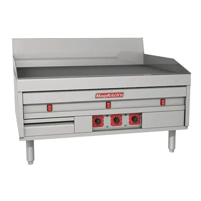 Discover kitchen perfection with the Magikitchn MKE-36-E Electric Countertop Griddle. This top-of-the-line griddle is designed to meet the demands of a busy commercial restaurant kitchen. With a spacious 35-3/4" x 24" cooking surface, you'll have plenty of room to cook multiple dishes at once. The 1" thick heavy-duty polished griddle plate ensures even heat distribution for consistent cooking results every time. The electric thermostat allows for precise temperature control, while the grease chute and box, along with the front grease trough, make cleaning up a breeze. The stainless steel construction not only adds durability but also gives the griddle a sleek and professional look. With 4" removable legs, this griddle can be easily placed on any countertop. Plus, with its ENERGY STAR certification, you can be confident that this griddle is energy-efficient. Upgrade your kitchen with the Magikitchn MKE-36-E Electric Countertop Griddle and experience the perfect blend of performance and convenience.