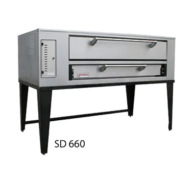 Boost culinary creativity with the Marsal Ovens SD660 SINGLE Pizza Oven. This deck-type gas oven is designed to meet the demands of commercial restaurants, offering a spacious baking chamber measuring 7"H x 36" x 60" and a capacity for up to six 18" pies. The 2" thick brick deck ensures even heat distribution, resulting in perfectly cooked pizzas every time. With a temperature range of 300 - 650 degrees Fahrenheit, you have full control over the cooking process. The stainless steel top, front, doors, and sides not only provide durability but also give the oven a sleek and professional appearance. The aluminized steel interior is easy to clean, saving you time and effort. Adjustable legs allow for easy installation and leveling. With a powerful 130,000 BTU burner, this oven delivers exceptional performance. Trust in the quality and authenticity of this Made in USA product, UL and UL EPH Classified. Elevate your pizza game with the Marsal Ovens SD660 SINGLE Pizza Oven.