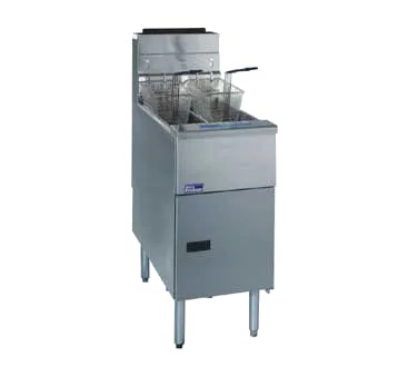 Revolutionize your cooking setup with the Pitco Frialator SG14T-S Fryer. This gas-powered, floor model fryer is designed to meet the demands of a busy commercial restaurant. With its split frypot, you can simultaneously cook different types of food, increasing efficiency and productivity in the kitchen. Each tank has a capacity of 20-25 lbs of oil, allowing you to fry large quantities of food at once. The millivolt control ensures precise temperature regulation, resulting in perfectly cooked dishes every time. Made with stainless steel, this fryer is durable and easy to clean, making it ideal for a fast-paced restaurant environment. With a total BTU of 100,000, this fryer delivers powerful performance to meet the needs of high-volume cooking. NSF, CE, CSA Flame, and CSA Star certifications guarantee its safety and quality. Upgrade your kitchen with the Pitco Frialator SG14T-S Fryer and experience enhanced cooking capabilities.