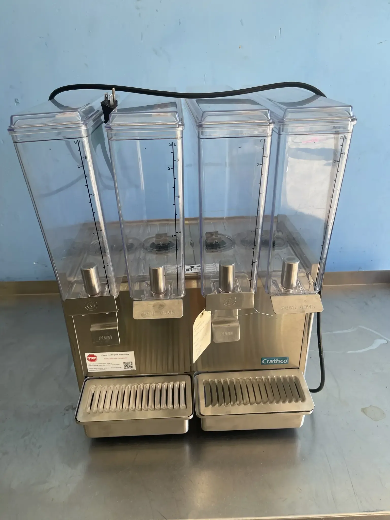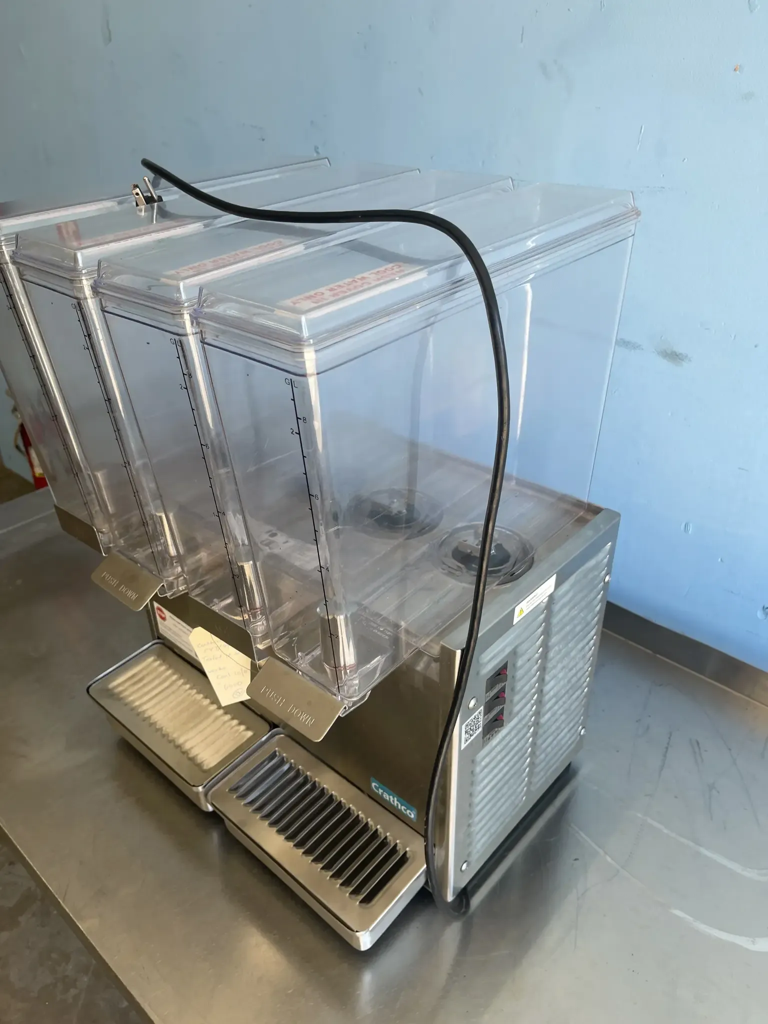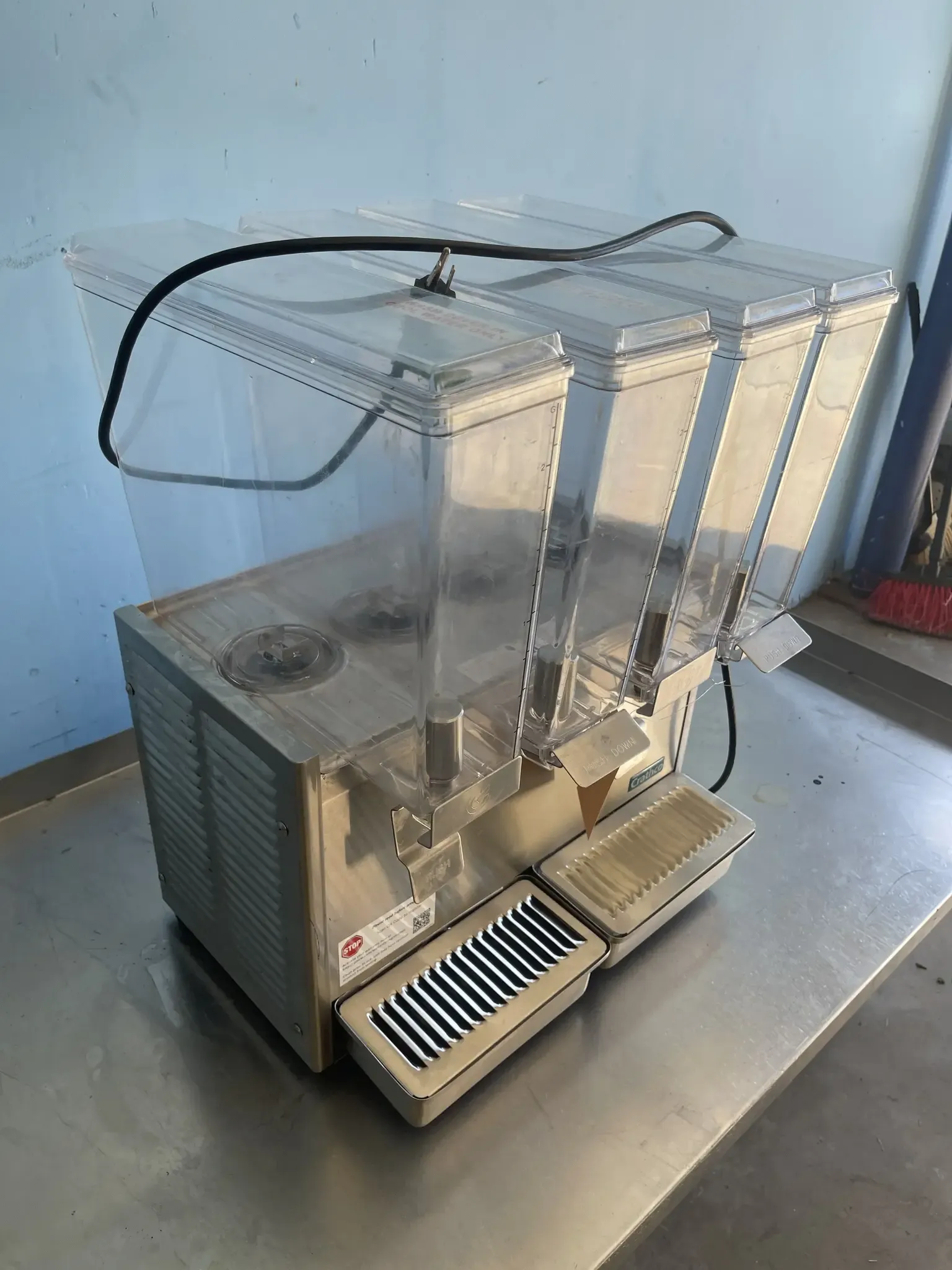 The Crathco E49-3 Stainless Steel Cold Beverage Dispenser delivers performance and style for busy foodservice environments. Designed for high-capacity beverage service, it keeps up to three different drinks chilled, clear, and ready to serve. With its sleek stainless-steel exterior, easy-clean design, and quiet operation, this dispenser is perfect for restaurants, cafés, convenience stores, and buffet setups that value efficiency and presentation. Built by Crathco — a trusted name in commercial beverage equipment — the E49-3 ensures every pour is refreshingly perfect.