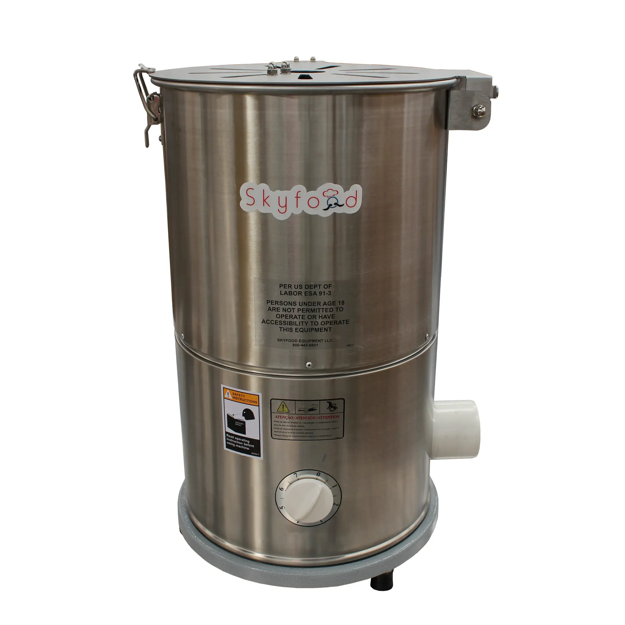 Streamline workflow with the Skyfood Equipment DAL-6 Garlic Peeler. Designed for commercial restaurant use, this stainless steel peeler is a game-changer in the kitchen. With a 9 lb. capacity and the ability to peel approximately 106 lbs. of garlic per hour, this peeler is a time-saving powerhouse. The 5-minute timer ensures precise peeling, while the safety microswitch on the cover guarantees operator safety. Powered by a 1/4 HP motor, this peeler is reliable and efficient. Its compact size and sleek stainless steel body make it easy to clean and maintain. Whether you're running a busy restaurant or a catering service, the Skyfood Equipment DAL-6 Garlic Peeler will revolutionize your garlic peeling process. Say goodbye to tedious manual peeling and hello to increased productivity and efficiency in your commercial kitchen.